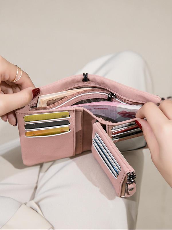 Women's Elegant Minimalist Short Wallet with Wristlet, Casual Versatile Zipper Card Slots Wallet, Trendy Wallet for Daily Use