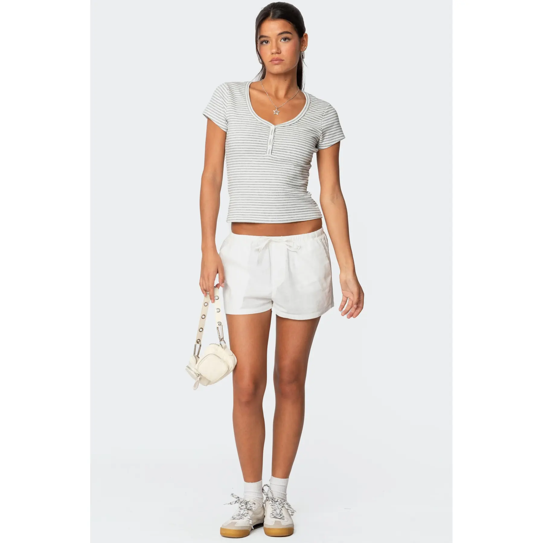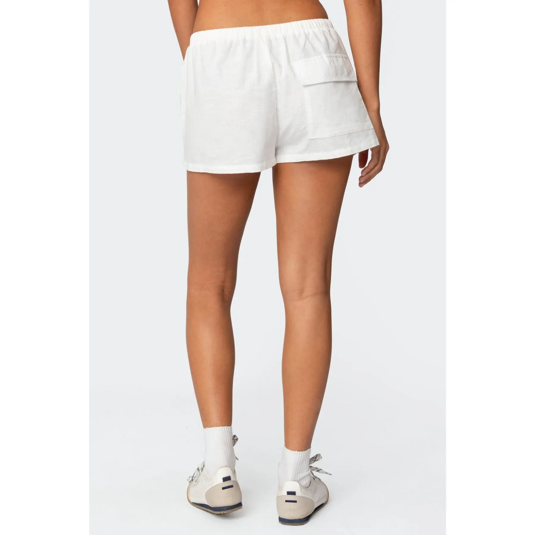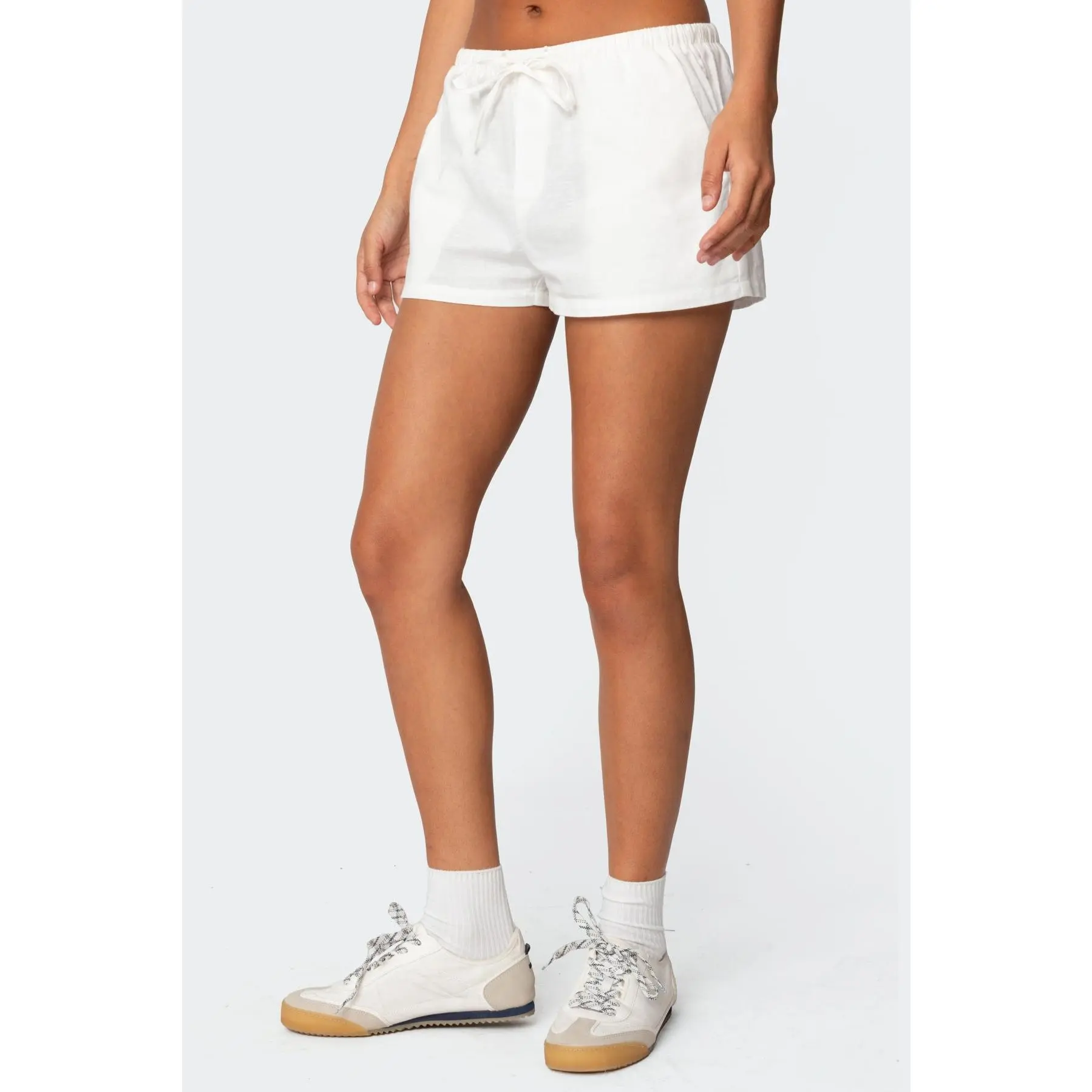 Exactly what I was looking for - perfect fit and length light linen feeling white shorts with cute drawstring. Love!!!! Got size xs and I’m 4’11 and 100 lbs