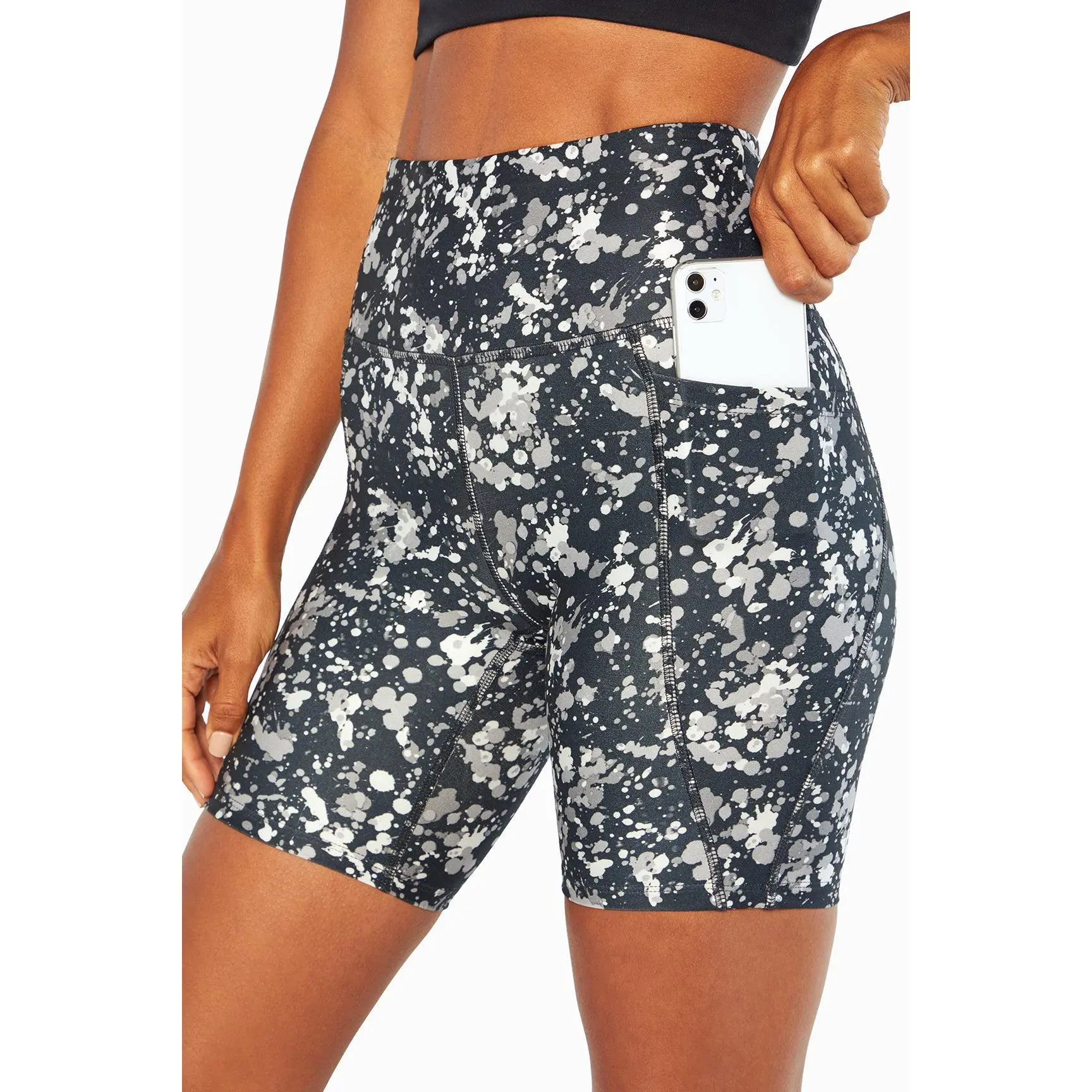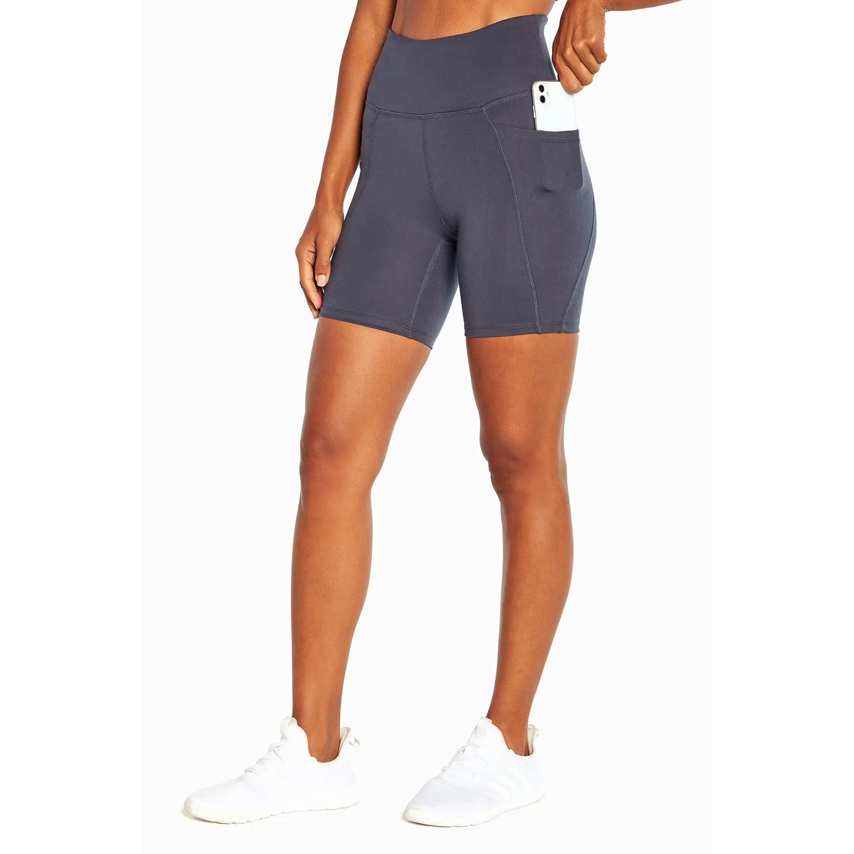 I love these shorts! They stretch and move with you without bunching or pinching. The pockets are great phone on one side and keys on the other.