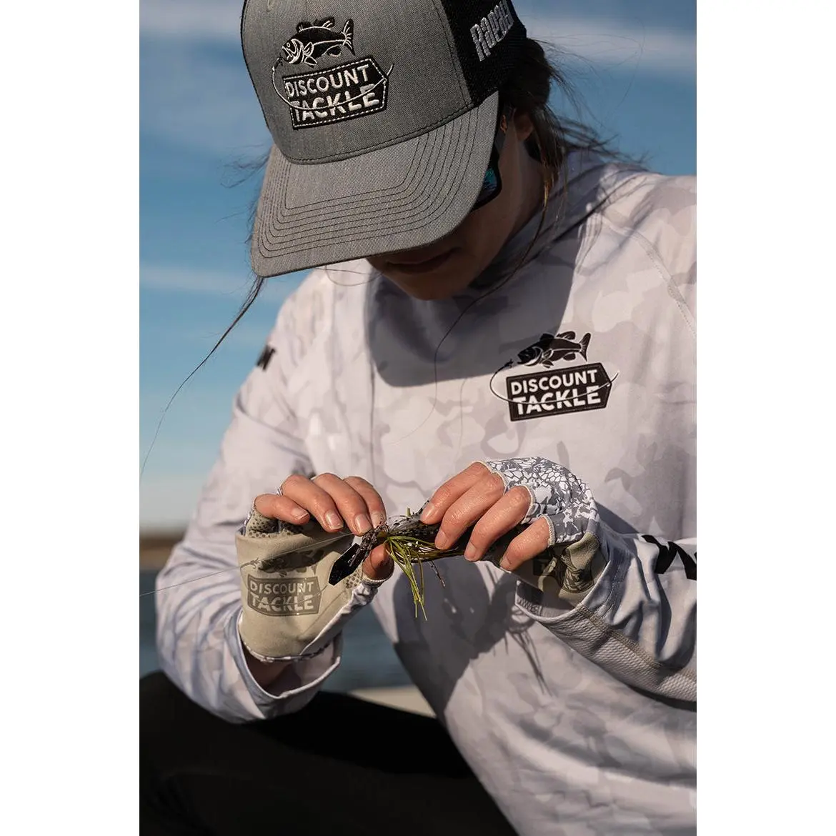 ·Intended to offer a secure grip with their Silicone Palm featuring a subtle Discount Tackle logo and designed with Exposed Fingertips + convenient Finger Pull Loops, the Discount Tackle Gloves provide both grip and tactile sensitivity for precise handling of your gear!