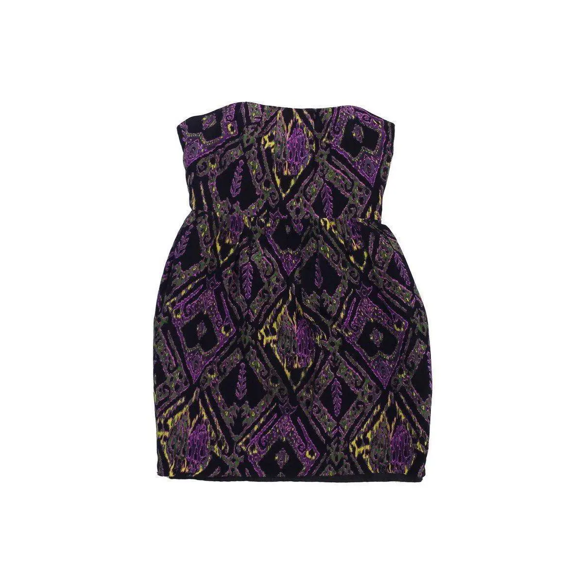 Shoshanna - Black & Purple Print Silk Strapless Dress Sz S