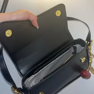 the bag is soooo cute, the gold hardware looks really nice & matches perfectly with the cherry charm i got. spacious bag. personally i think it’s worth it it’s super cute. it’s obviously not real leather so you need to take extra care of it & be more careful using it but for the price its worth it