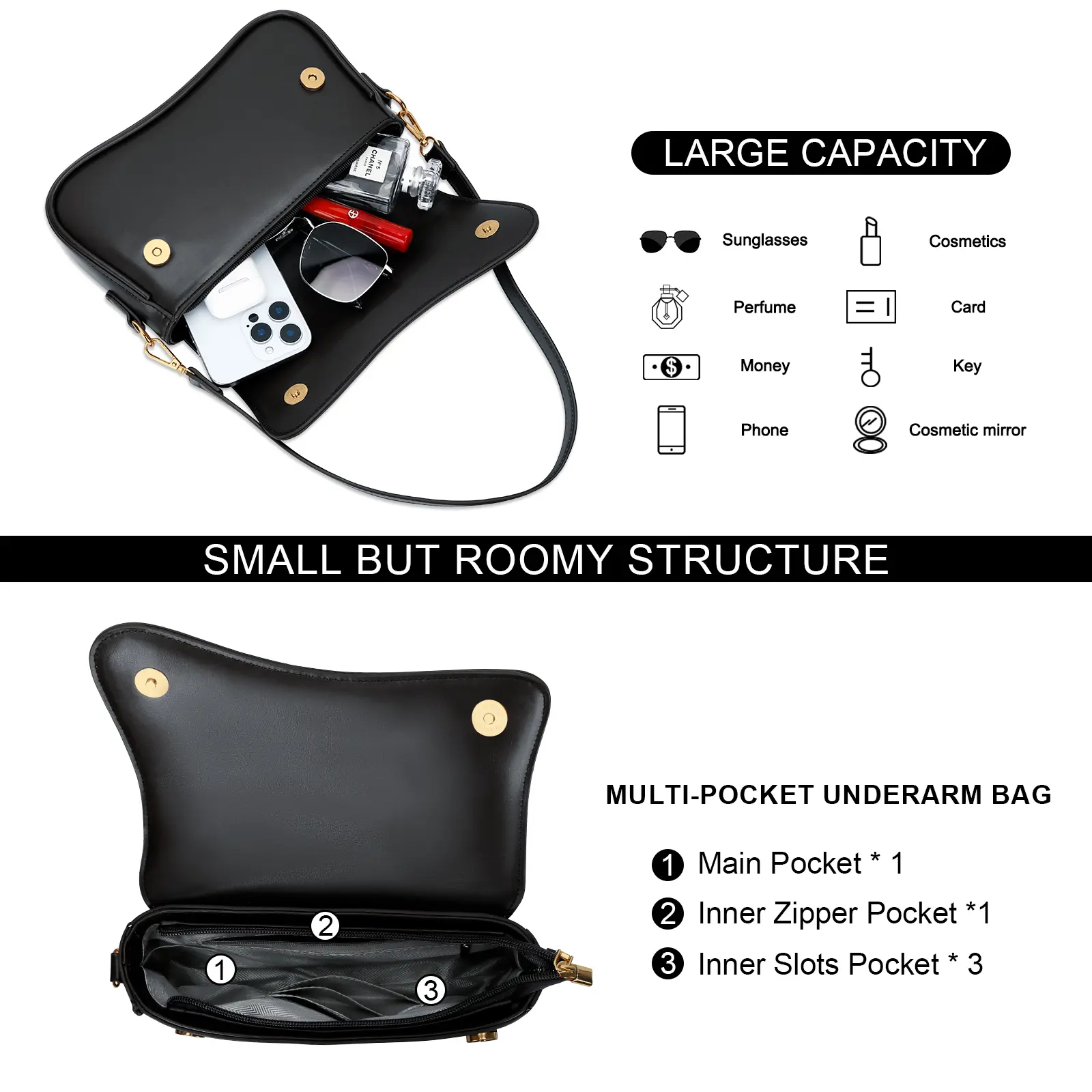 ·Spacious Space: This shoulder bag for women has a main pocket, a inner zipper pocket and 3 inner slots pocket. The spacious space can accommodate wallets, credit cards, drivers license, sunglasses, skin care products, cosmetics, keys, and mobile phones, etc