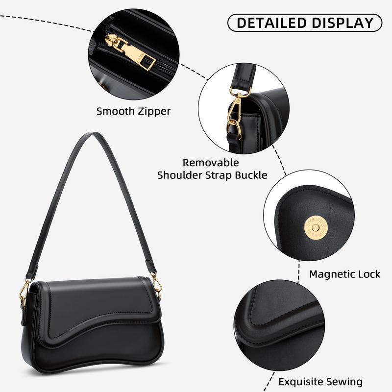 ·High Quality Material: High-quality PU leather fabric and exquisite stitching for a comfortable feel. 2 magnetic buckle locks and smooth metal zipper provide easy access to your items and keep them secure, durable gold hardware adds to the eye-catching appeal of this shoulder bag