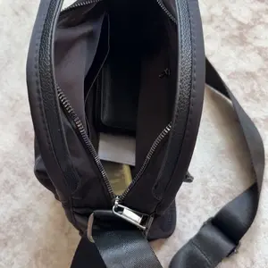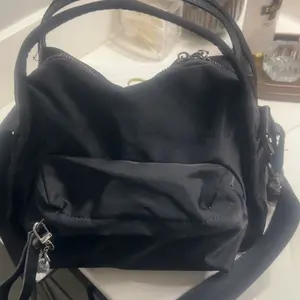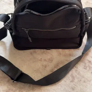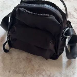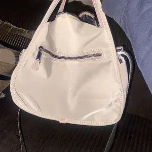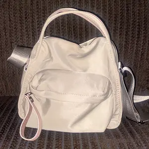The bag is cute. It’s good material it’s a medium-sized size not too small but small if that makes sense very spacious bag with a lot of pockets. The only thing that I don’t like is that you can’t remove the strap It’s super cute.
