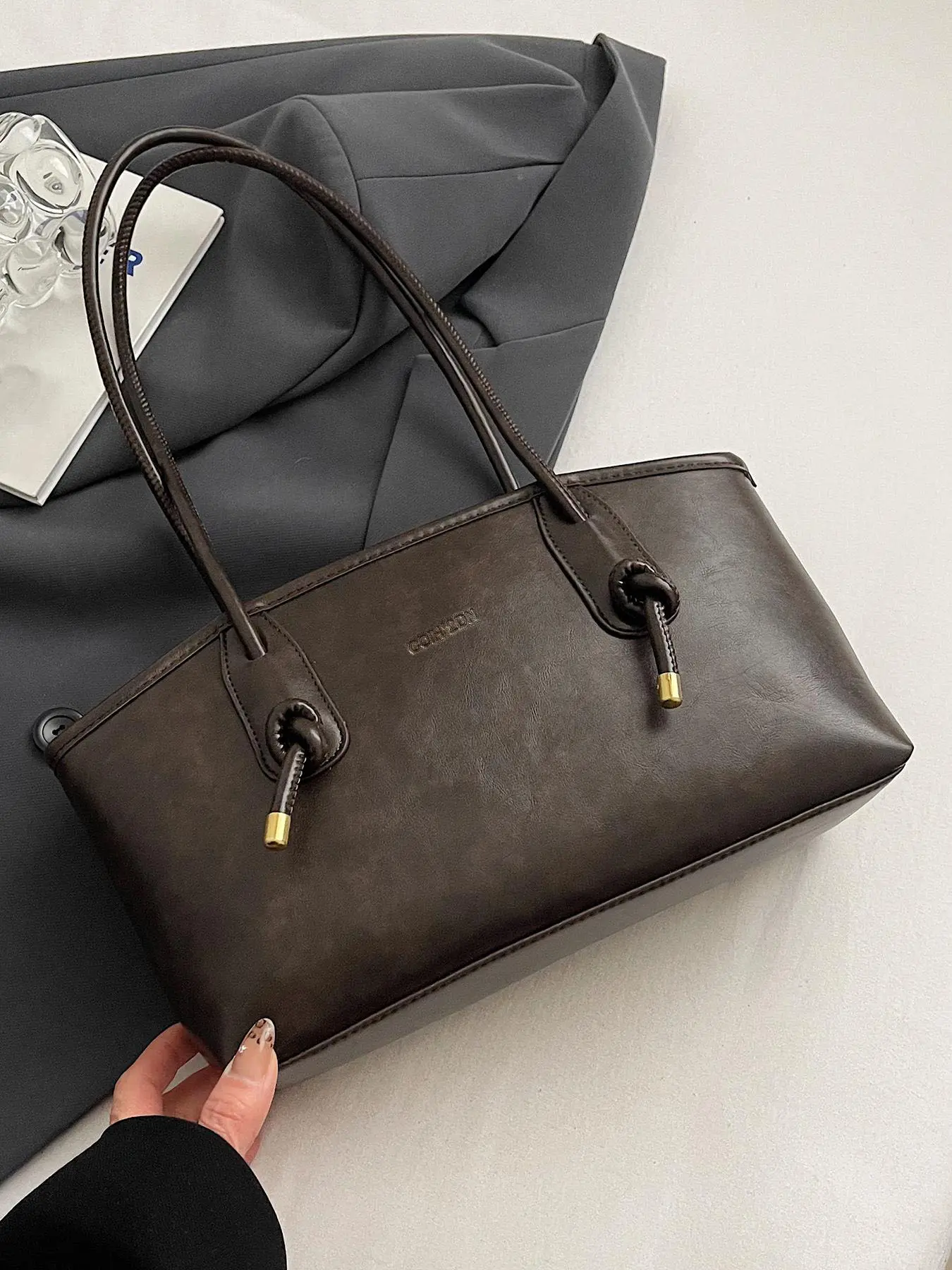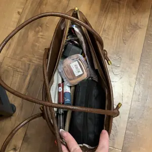 i had this bag in my cart for literally 2 weeks just debating on buying. i’m SO glad i did it’s perfect. fits so much space & the dark brown coffee color is to die for. the style and shape is 11/10 for me. just get it!!!!!!!