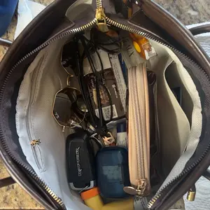 I love the bag and the color, it’s very spacious and the material is like soft leather. It has little inside pockets which are nice to have. Definitely worth the price. One thing I would say is the straps are a little thin so I hope they’re durable enough for the amount of stuff I carry.