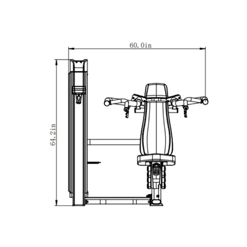Discover targeted training with our pin-selectorized equipment, designed primarily for the deltoid muscles and auxiliary work on the triceps brachii. This machine enables effective shoulder and upper arm workouts by pressing the handle upward after selecting the appropriate weight.
