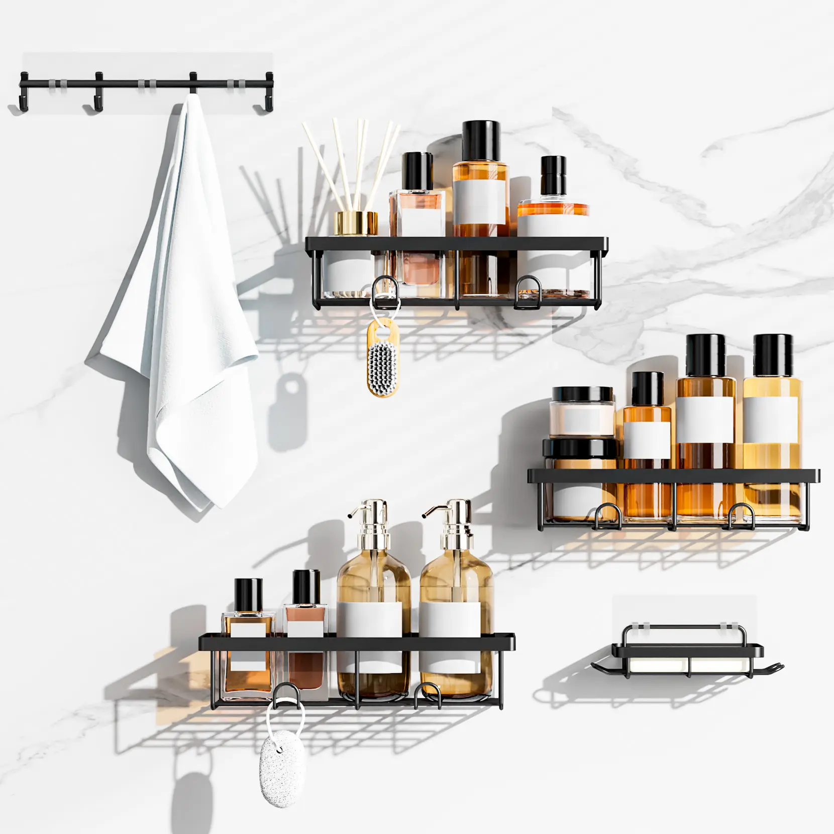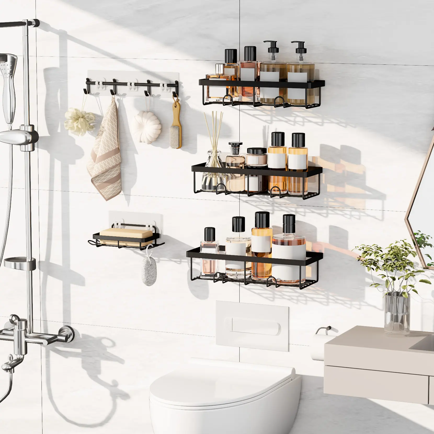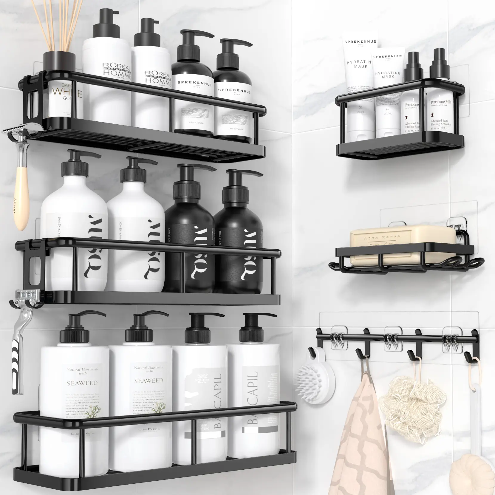 Absolutely love these so versatile for kitchen and bathroom 10 out 10 recommend . They are sturdy easy to put up and come with several sizes