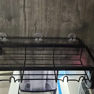 Product fits easily and sturdy against the wall. Looks just like picture. Used 1 in RV shower and 1 on coffee bar.