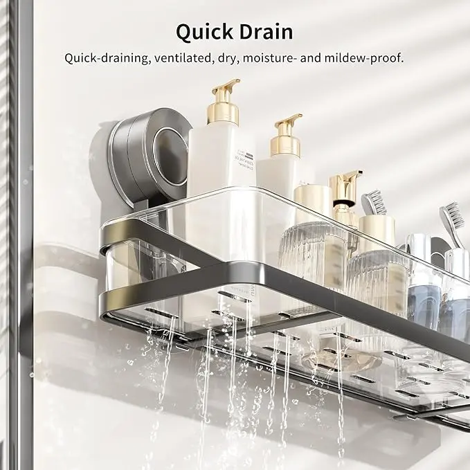 Detachable Basket Design: The main rack can be easily detached from the suction mounts, allowing you to clean the shelf thoroughly or reorganize its contents without removing the hardware from the wall.