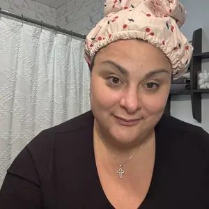 This is My 2nd Purchase of Kitsch Satin lined shower cap & Im absolutely obsessed in love w it omfgg it keeps my hair in place not an ounce of water gets into it I love it soooooo much I really do I will be buying more & more & more because it’s just that great I’m forever a customer 10 out of 10🤍✨