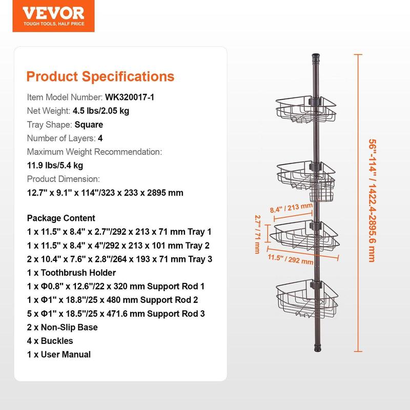 5. VEVOR 56" to 114" High Shower Corner Caddy Tension Pole Rust-Proof Tension Pole
