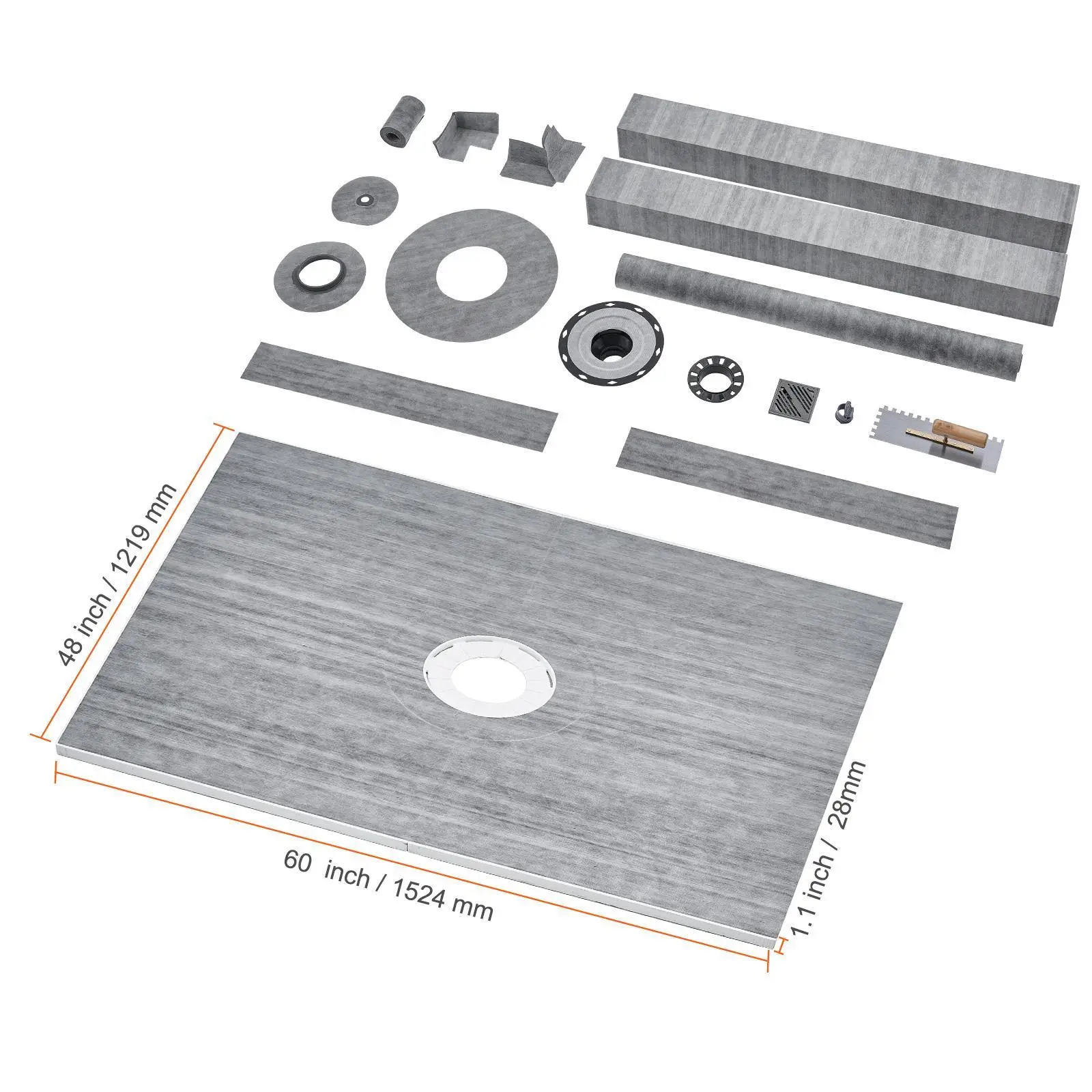 • Shower Tray 28mm: Enjoy long showers without worries of water leakage. Crafted with high-density HDPE waterproof membrane, double-layer 3M adhesive, and durable EPS board, creating a sturdy waterproof barrier.