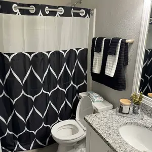 Turning my bathroom into a luxury spa room . This commercial grade shower curtain is perfect . Love that I can snap off the liner and toss in the wash . Game changer for any one who has ever had a plastic linner stick to your arm . 🤦♀️. Definitely recommended this curtain