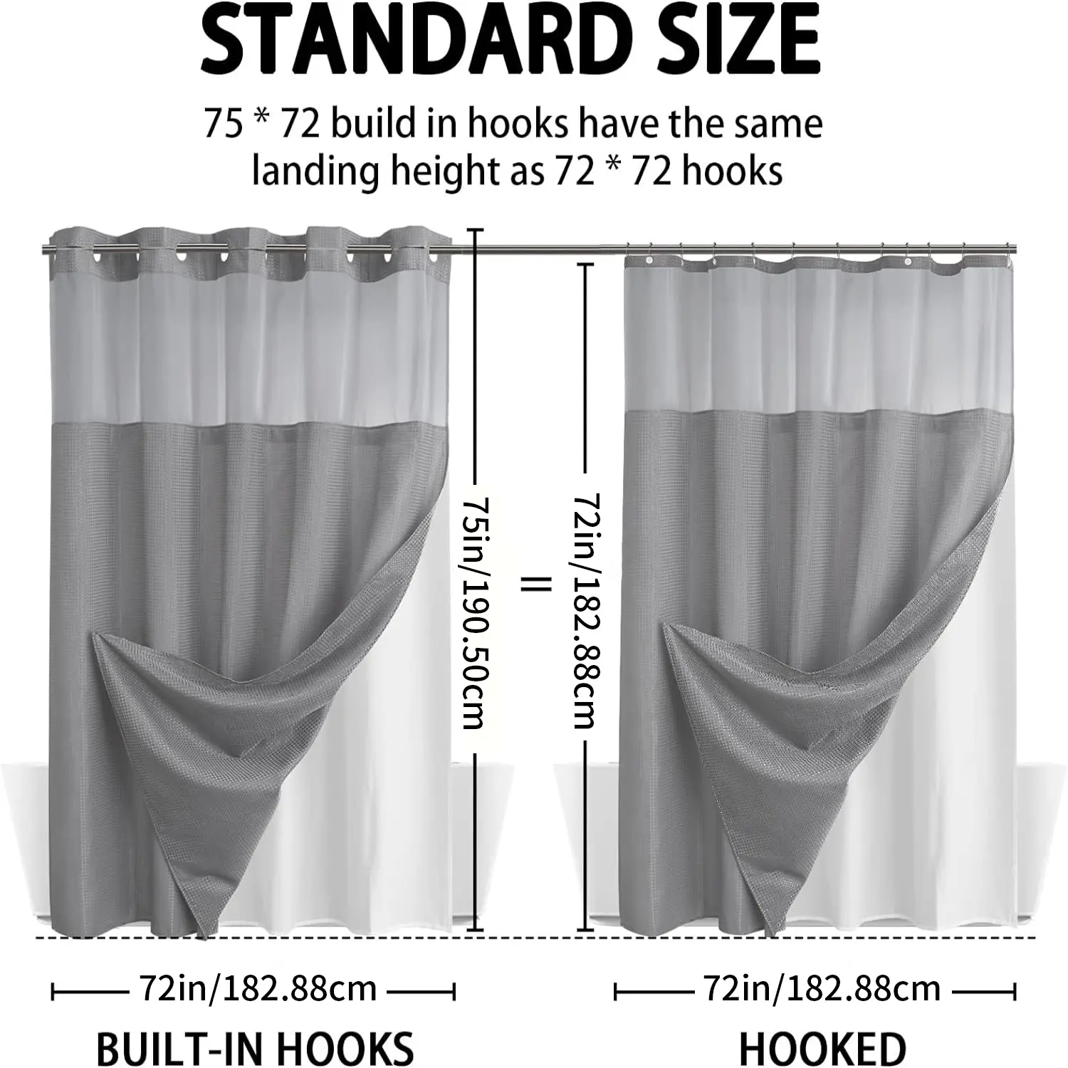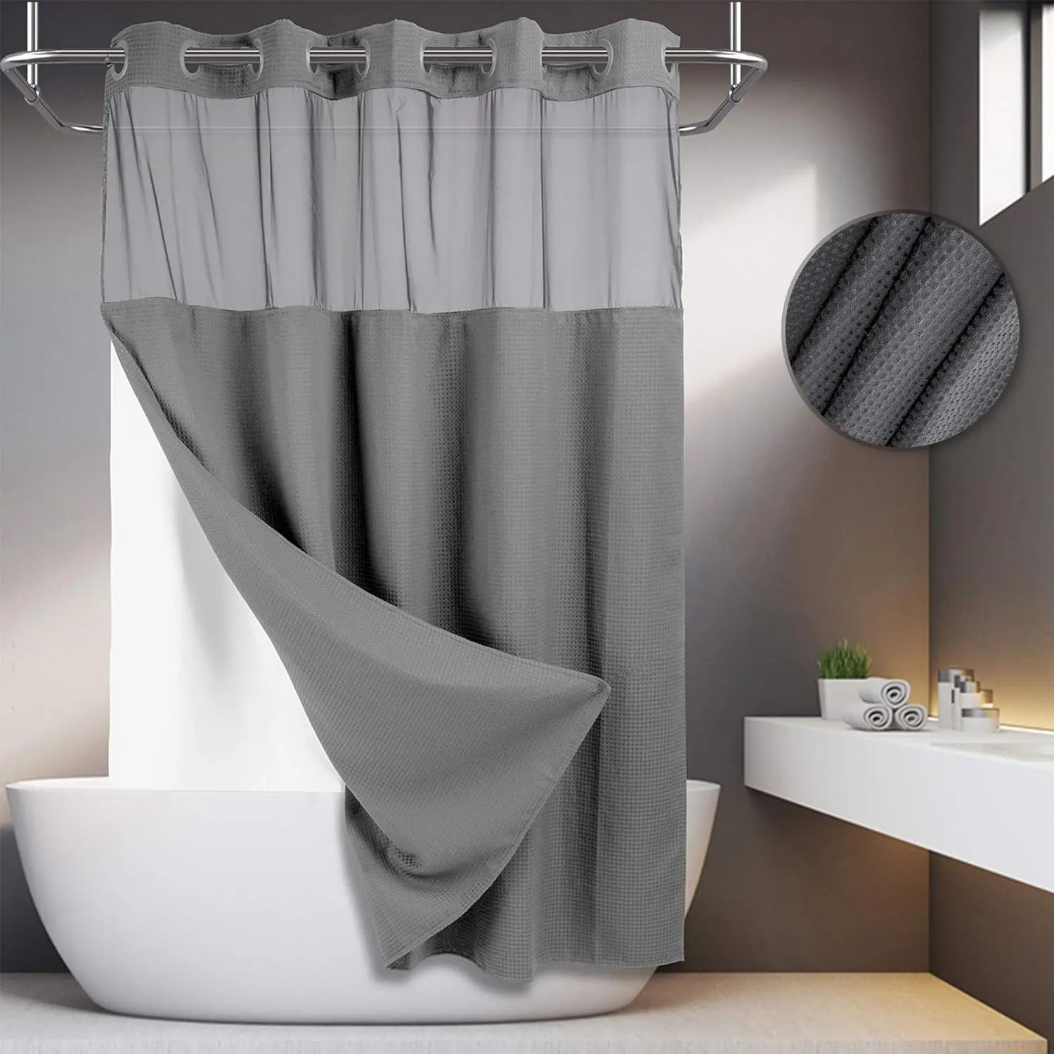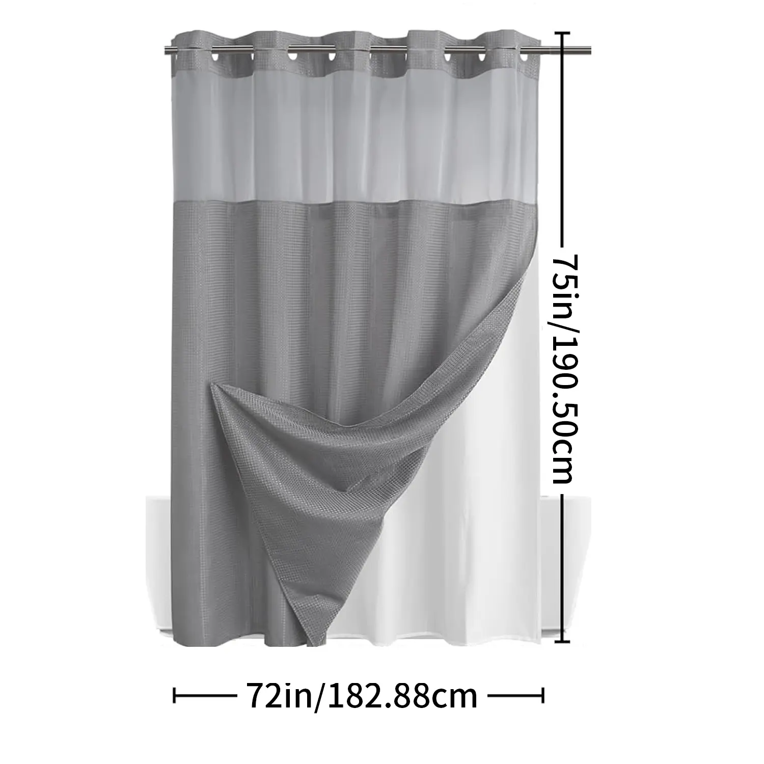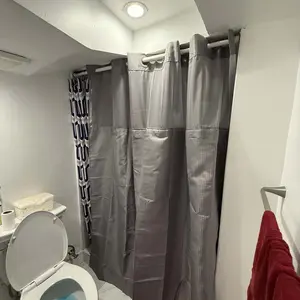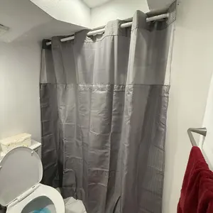 Exelente material y luce bella en el ban̈o ya voy ah ordenar otra porgue esta super expectacular no tengo que guitar la Cortina para lavarla tiene broches safo y pongo para atras y ya