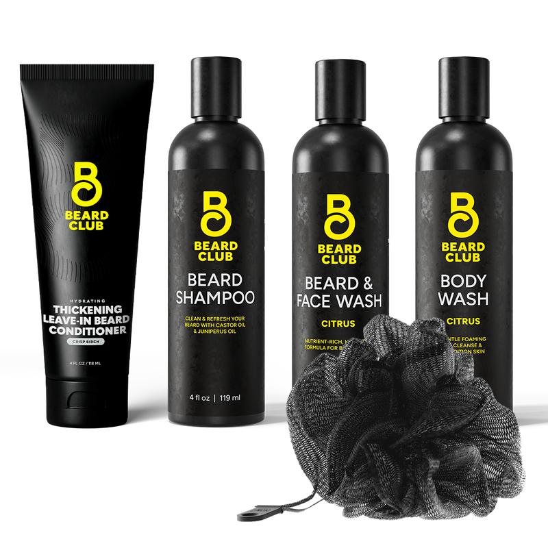 The Shower Essential Kit turns your daily shower into a full grooming routine. Start with our Beard and Face Wash to clean and prep your skin and beard. Use the Shampoo to wash and wake up your hair, and the Body Wash with loofah to leave your skin soft, smooth, and fully clean. Finish with the Leave-In Beard Conditioner to keep your beard hydrated, soft, and easy to manage all day. Clean from head to toe—fast, simple, and effective.