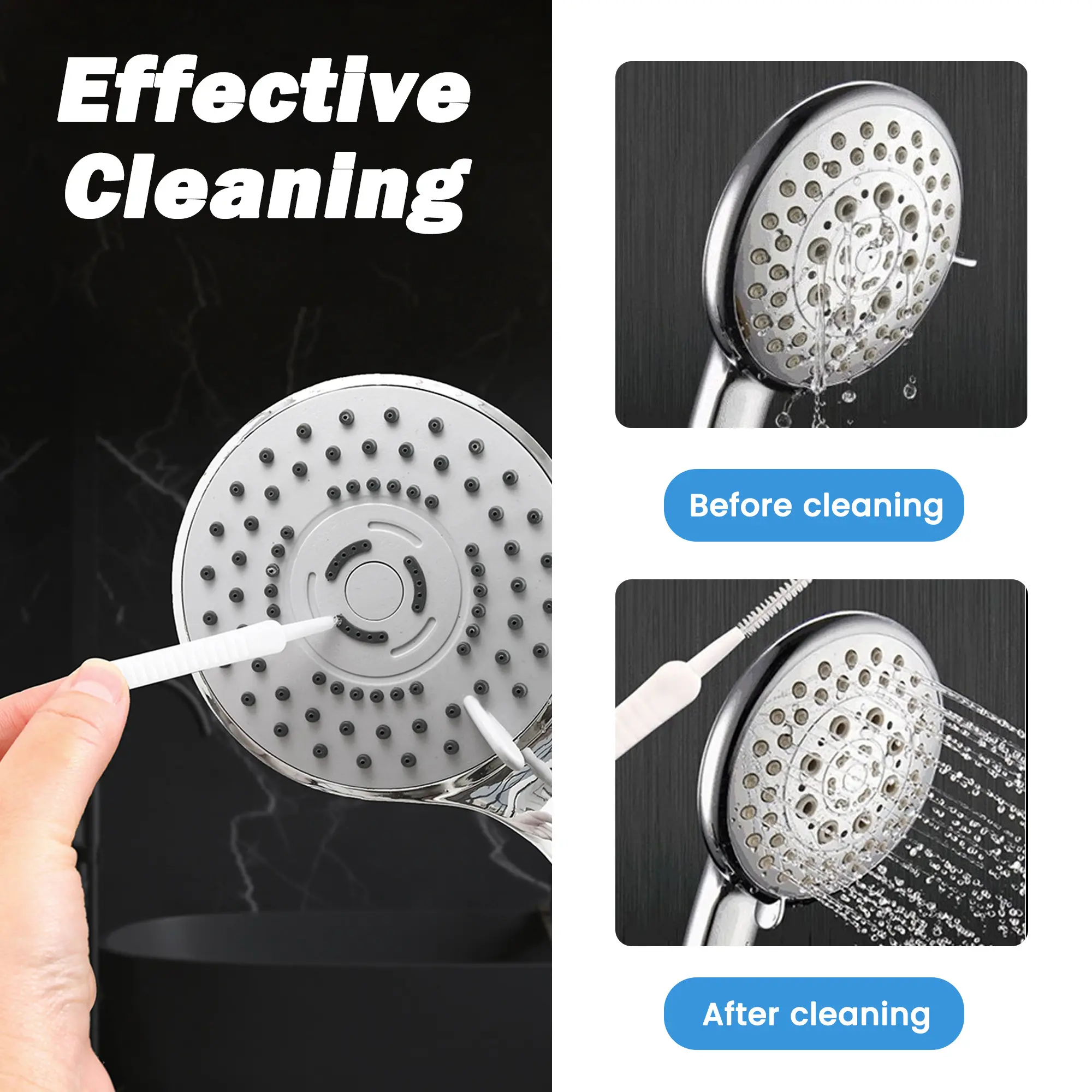 Efficient Tool - The shower head cleaning brush features spiral bristles, can remove debris effectively and ensuring optimal water flow through the showerhead. The small hole cleaner is perfect for dealing with clogged shower heads