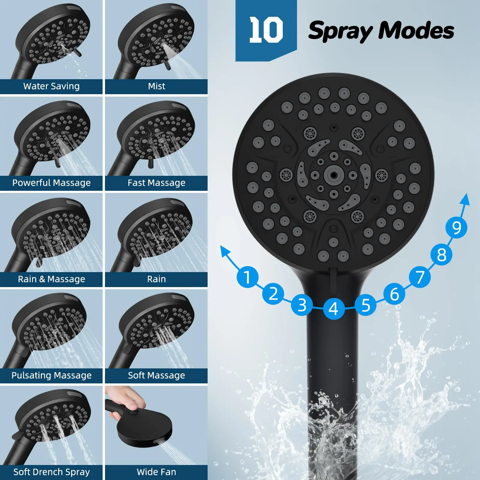 ·[10 Spray Mode Handheld] Our Hibbent high-pressure handheld shower head features an impressive powerful 10 settings, allowing you to effortlessly switch between various spray modes for all your needs—whether you’re enjoying a rejuvenating shower, bathing your baby, or rinsing off your dog. Its upgraded wide gan mode delivers a powerful, high-pressure water flow that efficiently covers larger areas, making it an essential tool for cleaning tubs, toilets, tiles, and other surfaces with ease, transforming routine tasks into quick and simple chores