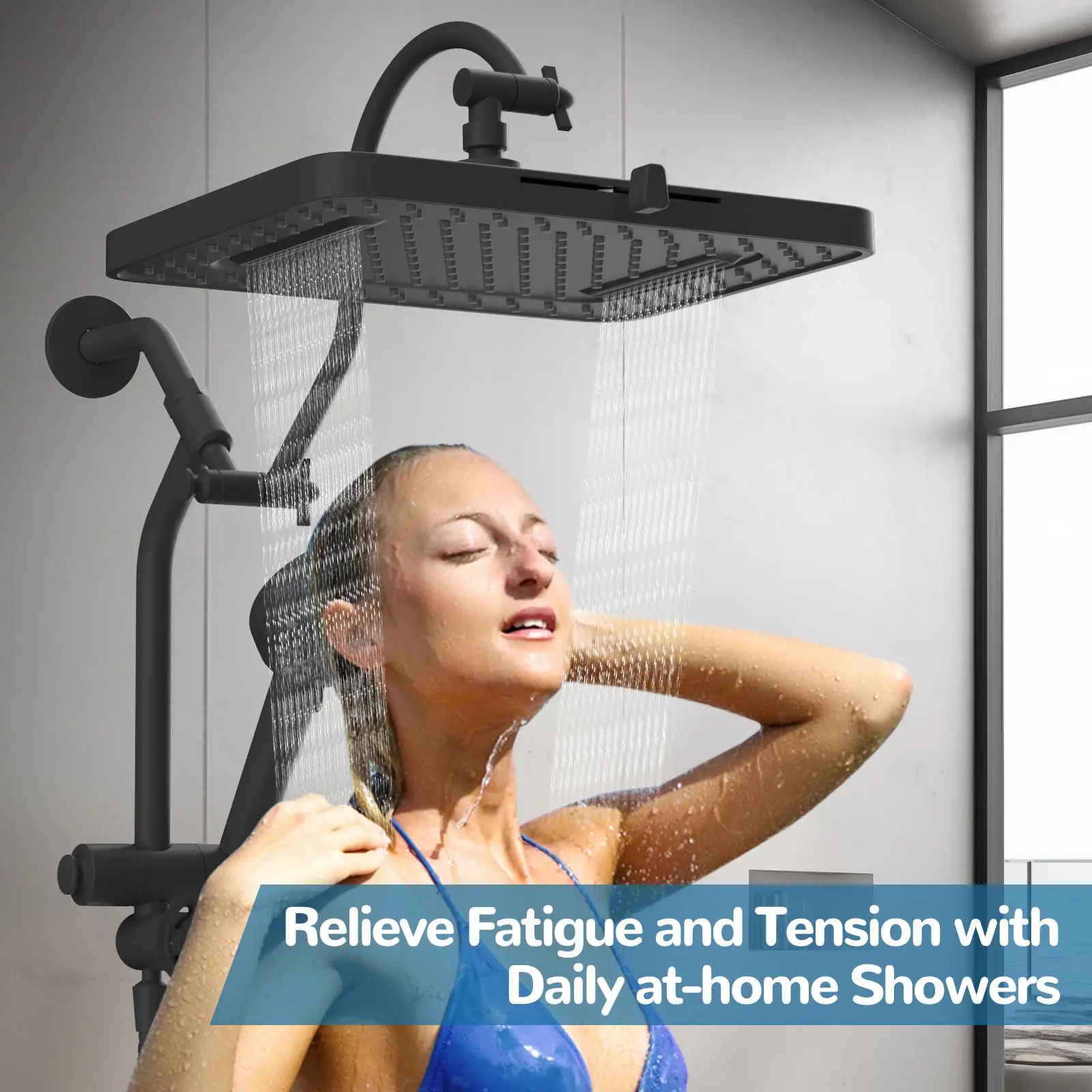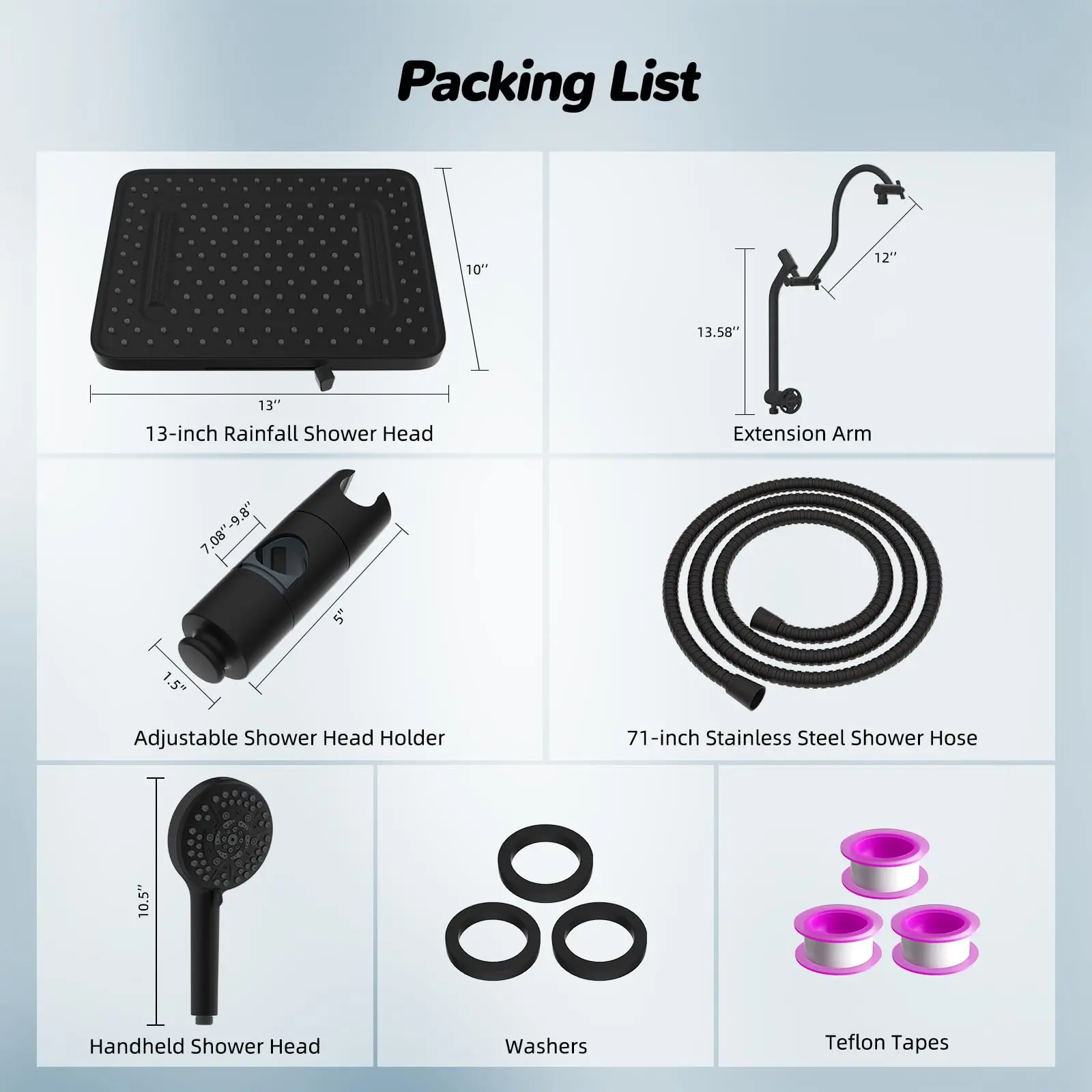 ·[Easy to Install] Installation is a breeze, as all necessary hardware and clear instructions are included, enabling you to set up your new shower system quickly—no professional help needed! Also, our customer support team is your strong backing. If you encounter any issues with your product, whether during installation or use, please contact us, and we will ensure to help you out. Note: The showerhead is 13 inches in size. Before purchasing, please confirm whether your bathroom space is suitable