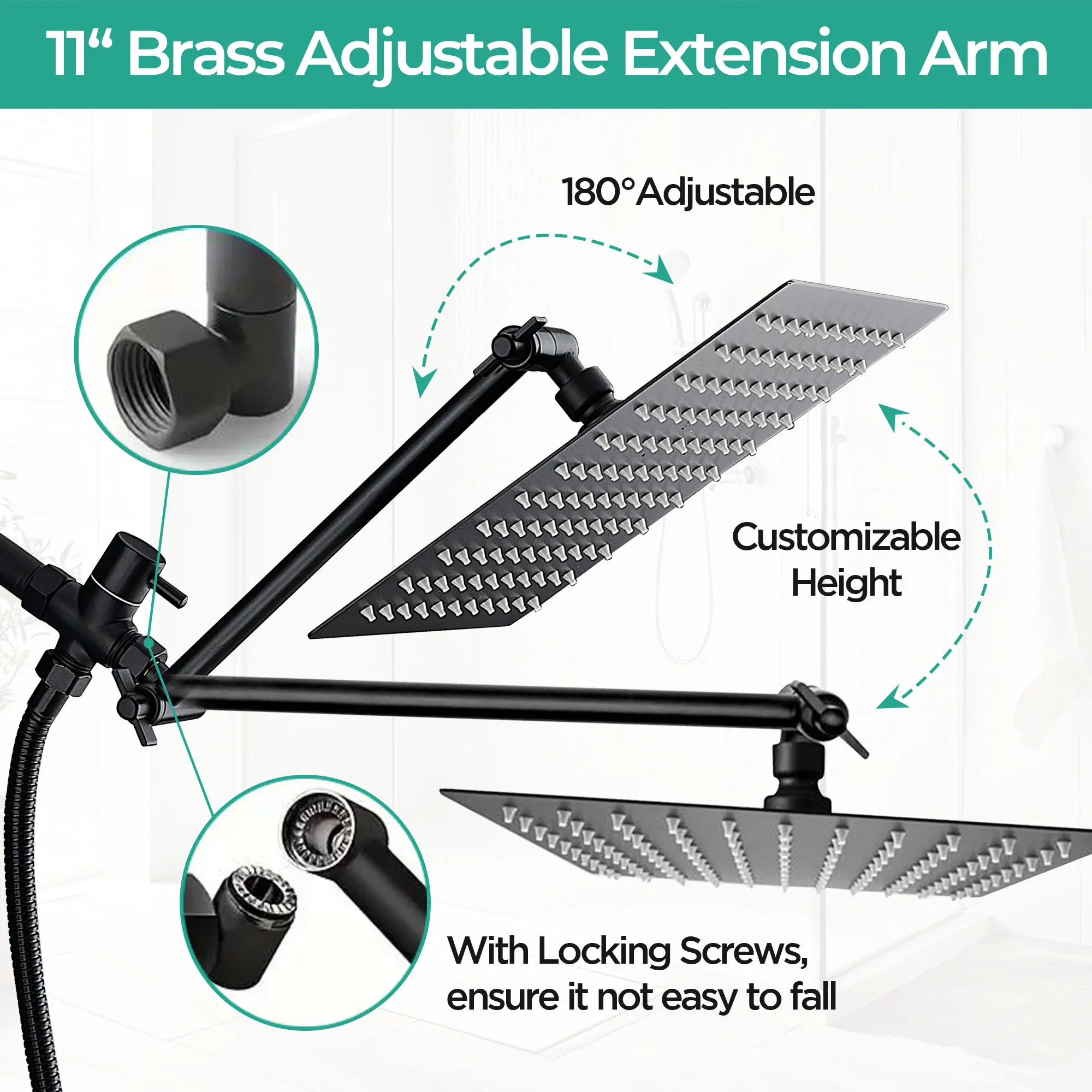 🤲 Ergonomic Comfort: Designed with you in mind, our showerhead set features an adjustable extension arm and a lightweight design for ultimate comfort. Make every shower a pleasure with our easy-to-use setup.