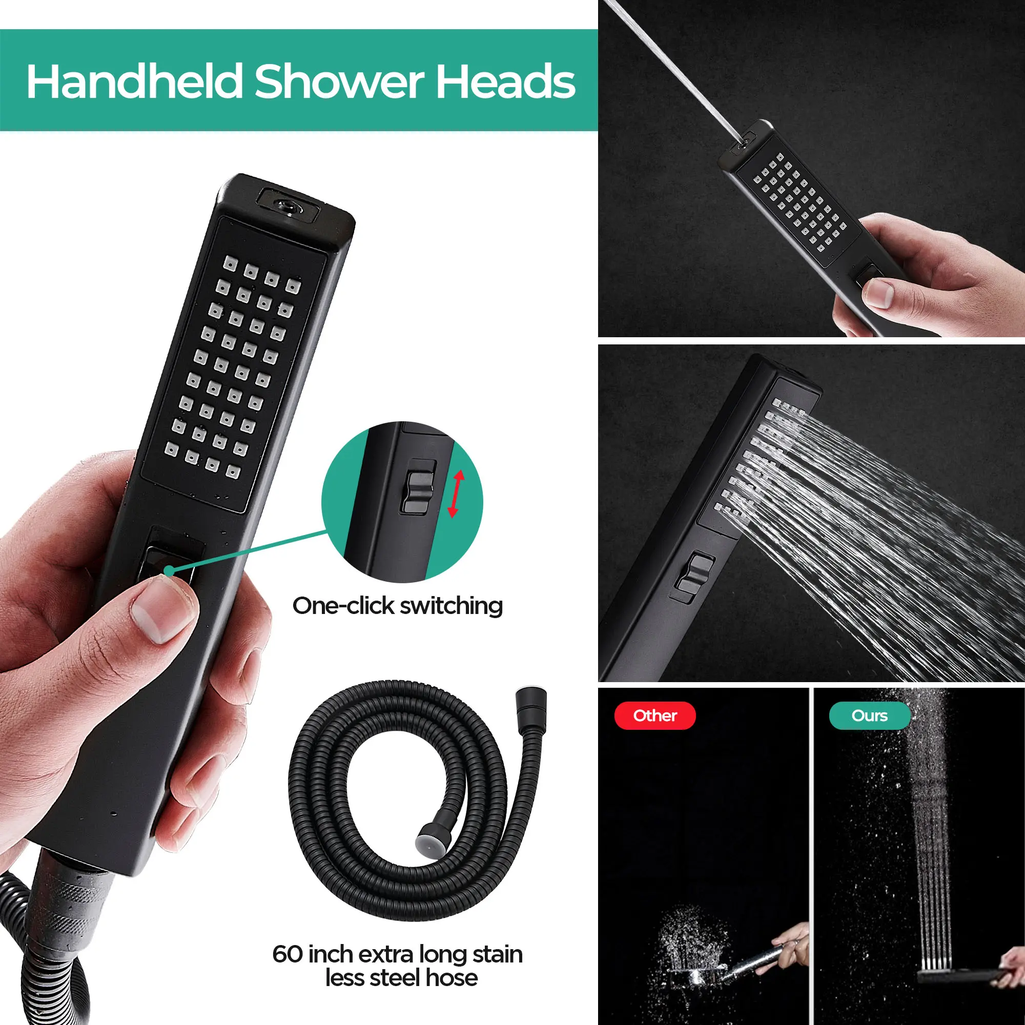 🔧 Dual-Function Versatility: One showerhead, two amazing experiences! Switch between handheld and overhead modes for a customizable shower that fits your every need, from a quick rinse to a thorough soak.
