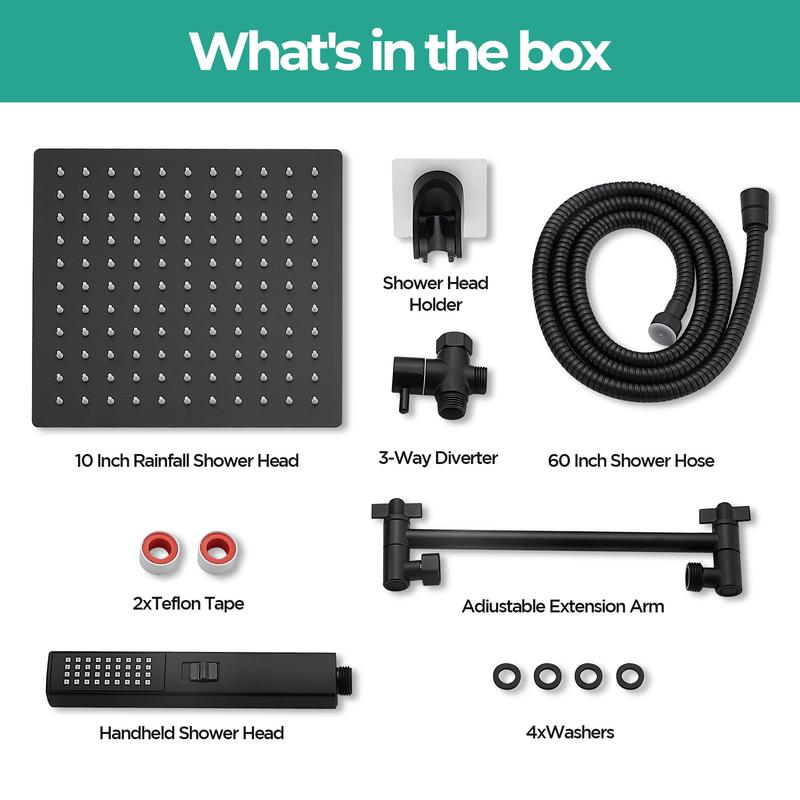 Shower Head Combo,10 Inch High Pressure Rain Shower Head,Adjustable Extension Arm, Spray with Long Hose & Tools, Shower Equipment for Home Springtok