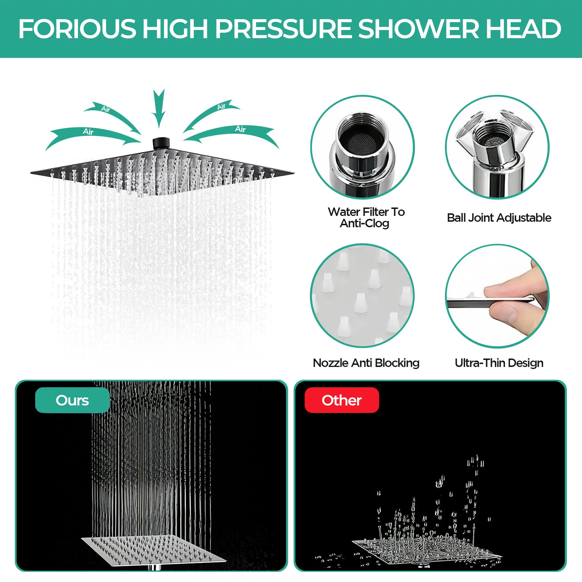 🚿✨ High-Pressure Rain Shower:Dive into a revitalizing shower with our high-pressure rain showerhead! Feel the power and relaxation of a rainforest experience right in your bathroom.