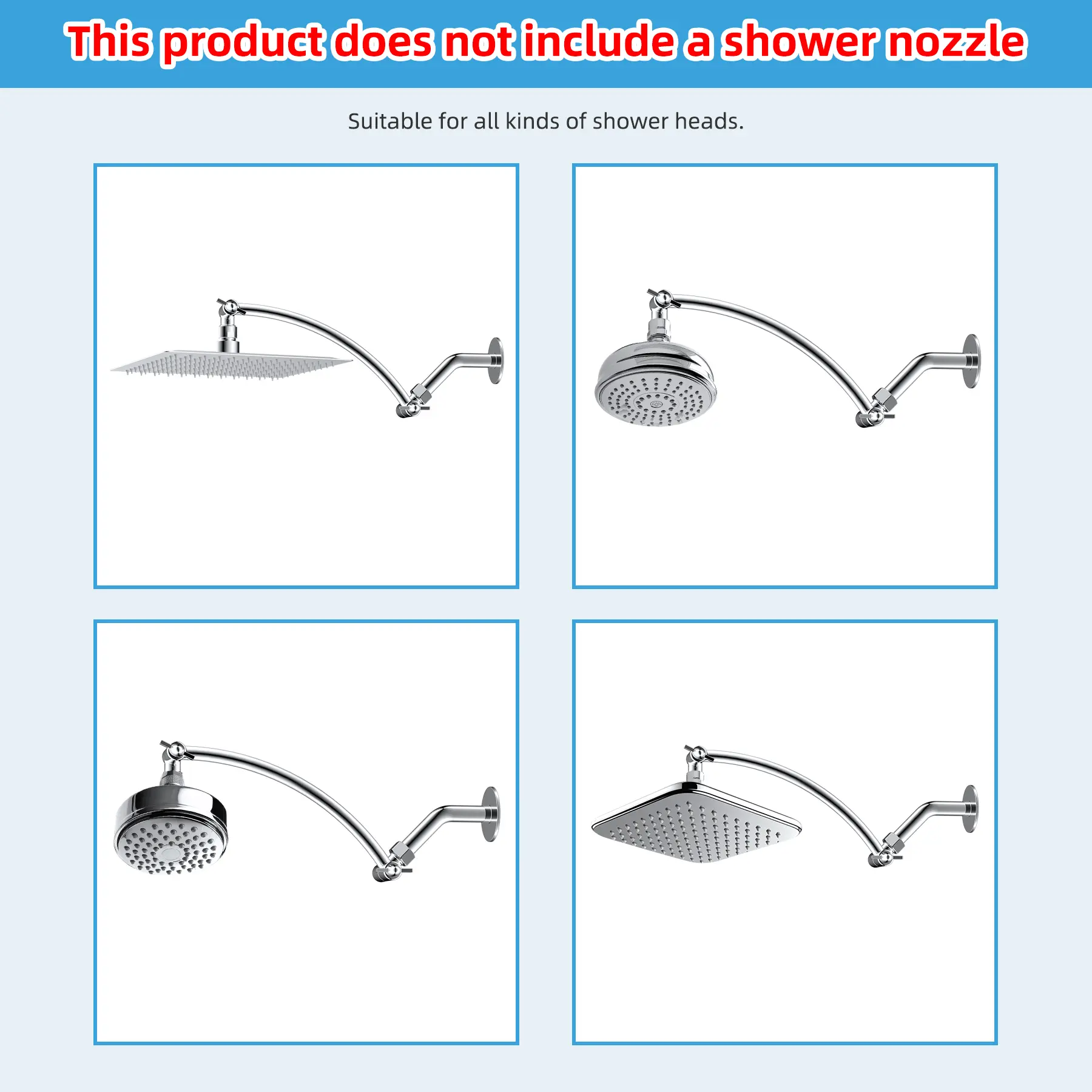 ·【Adjustable Height & Universally Fitted】Height & angle adjustable shower head arm extender fits any rain shower head or handheld shower head. This shower head height extender has G1/2 universally fitted thread. Please notice the rainfall shower head isn't included in the package.