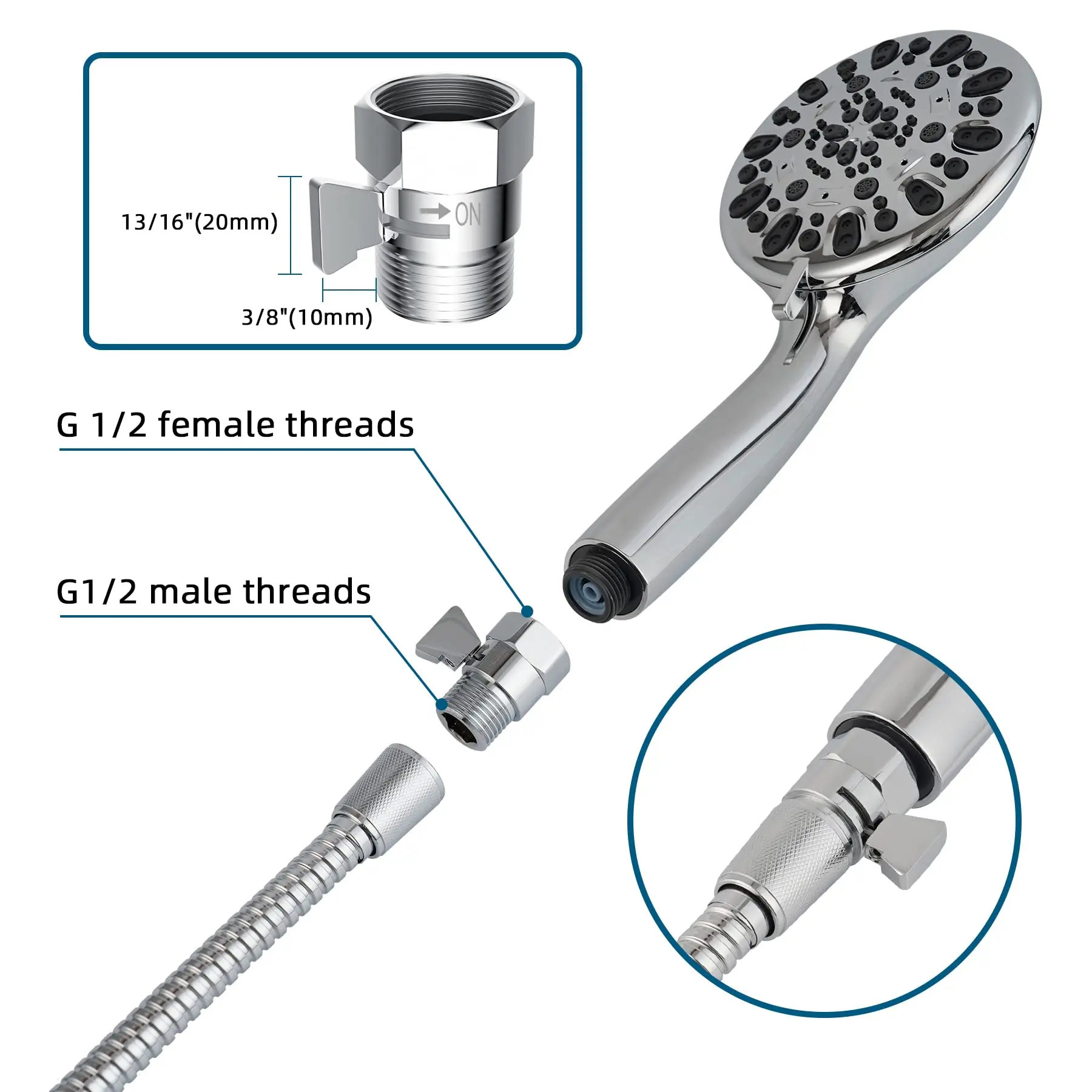 ·[Universal Compatibility] Standard straight thread connections with a G1/2-inch IPS female intake and 1 X G1/2-inch IPS male exit accommodate the majority of shower heads, shower arms, hoses, and water pipelines.