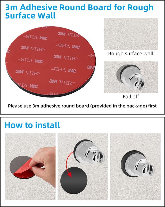 ·[Easy Installation] The removable suction cup shower head is easy to install, with no tools needed, and it is a self-priming installation without drilling. You can place your handheld showerhead or bidet sprayer anywhere you want. Whether it is in higher or lower position, our suction cup can satisfy your needs. If your surface wall is rough or about to fall off, we provide a 3m adhesive round board to solve the problem.