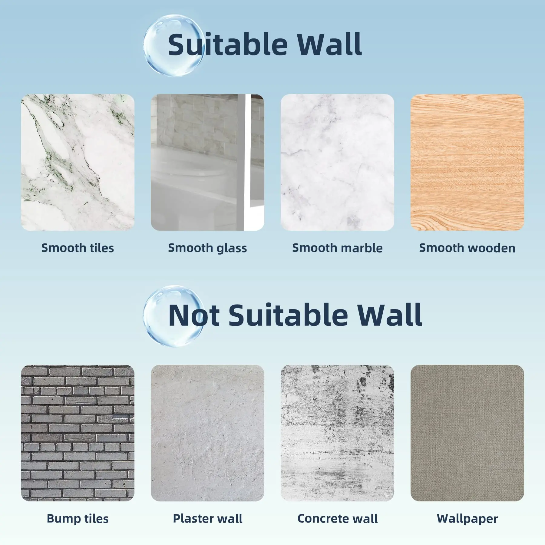 The adjustable shower wand holder is suitable for the smooth surface such as glass,ceramic tile,smooth wood,smooth metal surface.