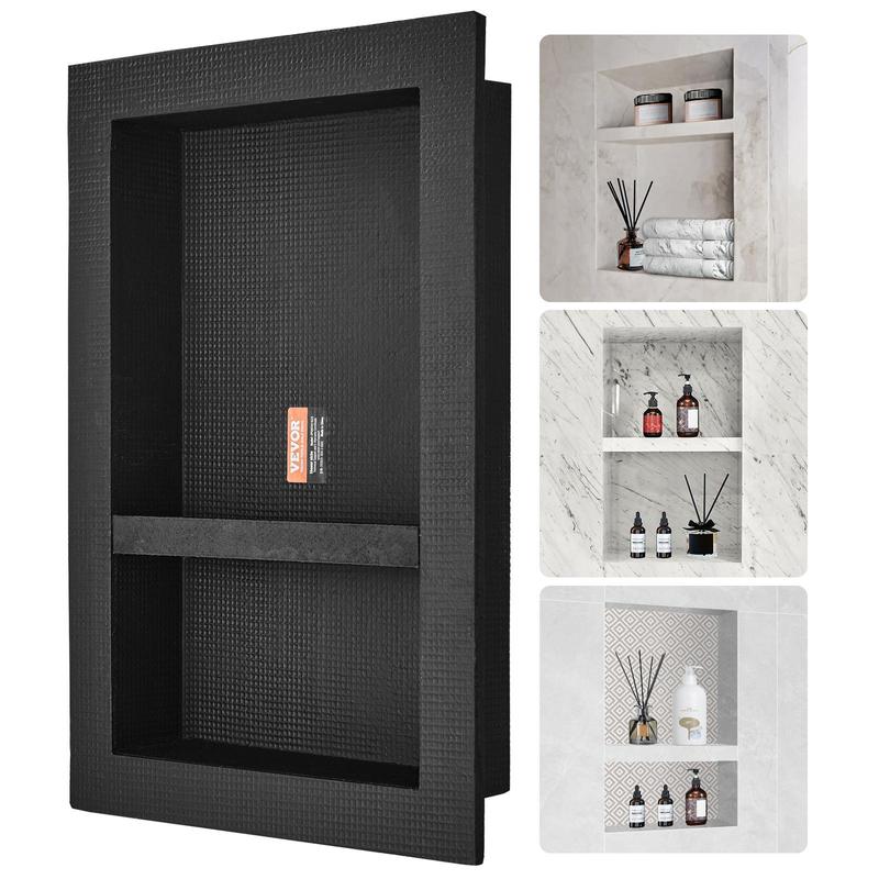 5. VEVOR Shower Niche Ready for Tile 16" x 24", TikTokShopBlackFriday, Double Shelf Organizer, Square Corners Wall-inserted Niche Recessed, Sealed Protection Modern Soap Storage Niche for Shower Bathroom, Black Racks Waterproof