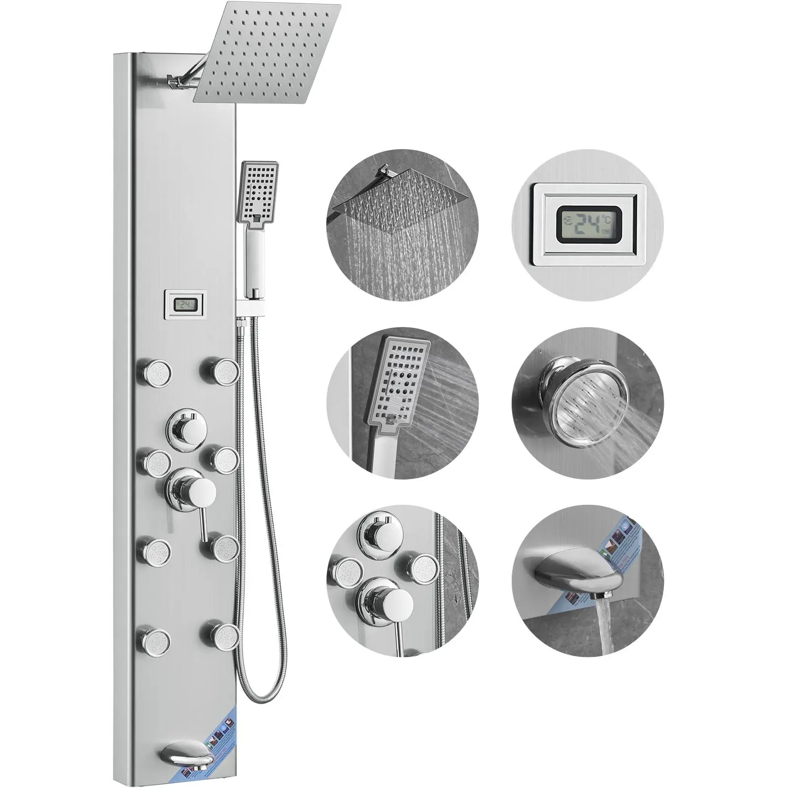 • Anti-Clog Nozzles: Our shower tower system features 8 angle-adjustable body massage jets and a 3-setting shower head to accommodate users of all heights, including children. Silicone nozzles can easily remove the blockage with your fingers, are easy to clean, and there is no need to worry about scale blockage.