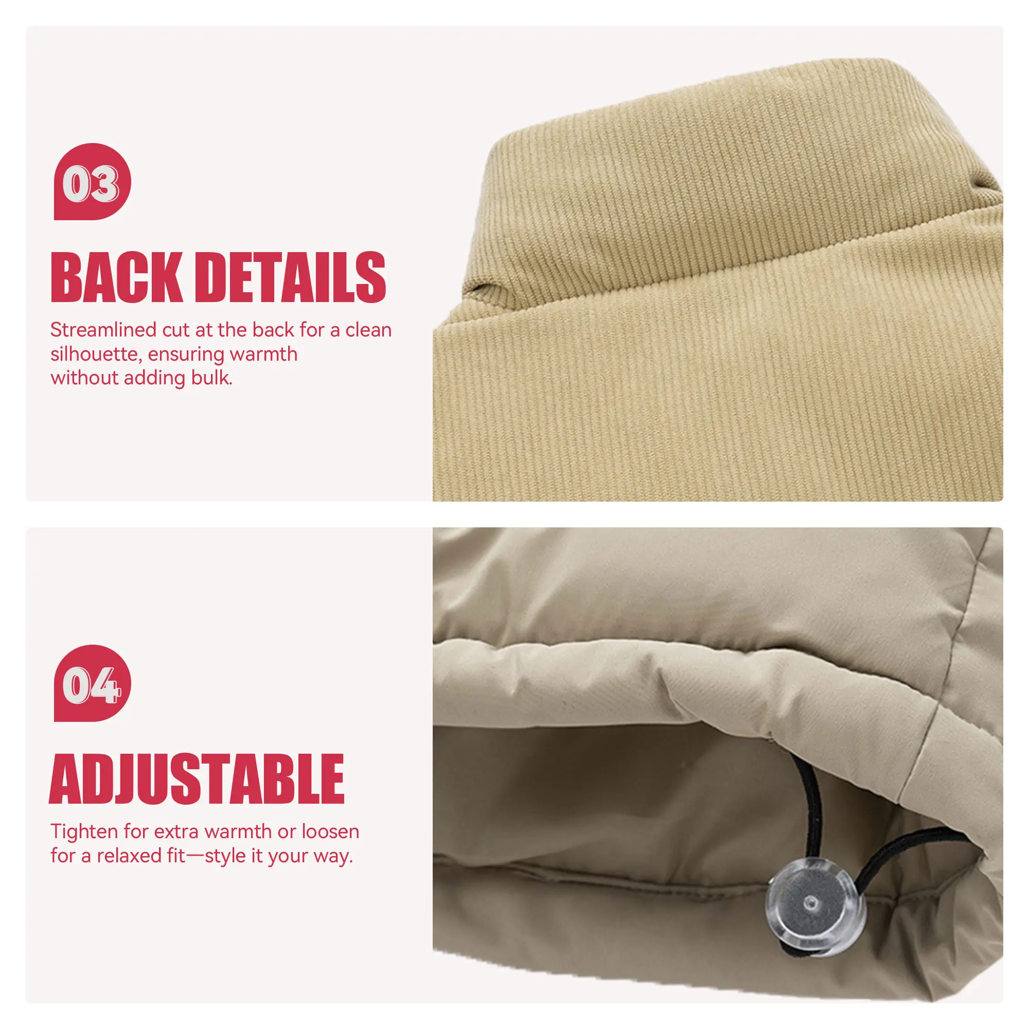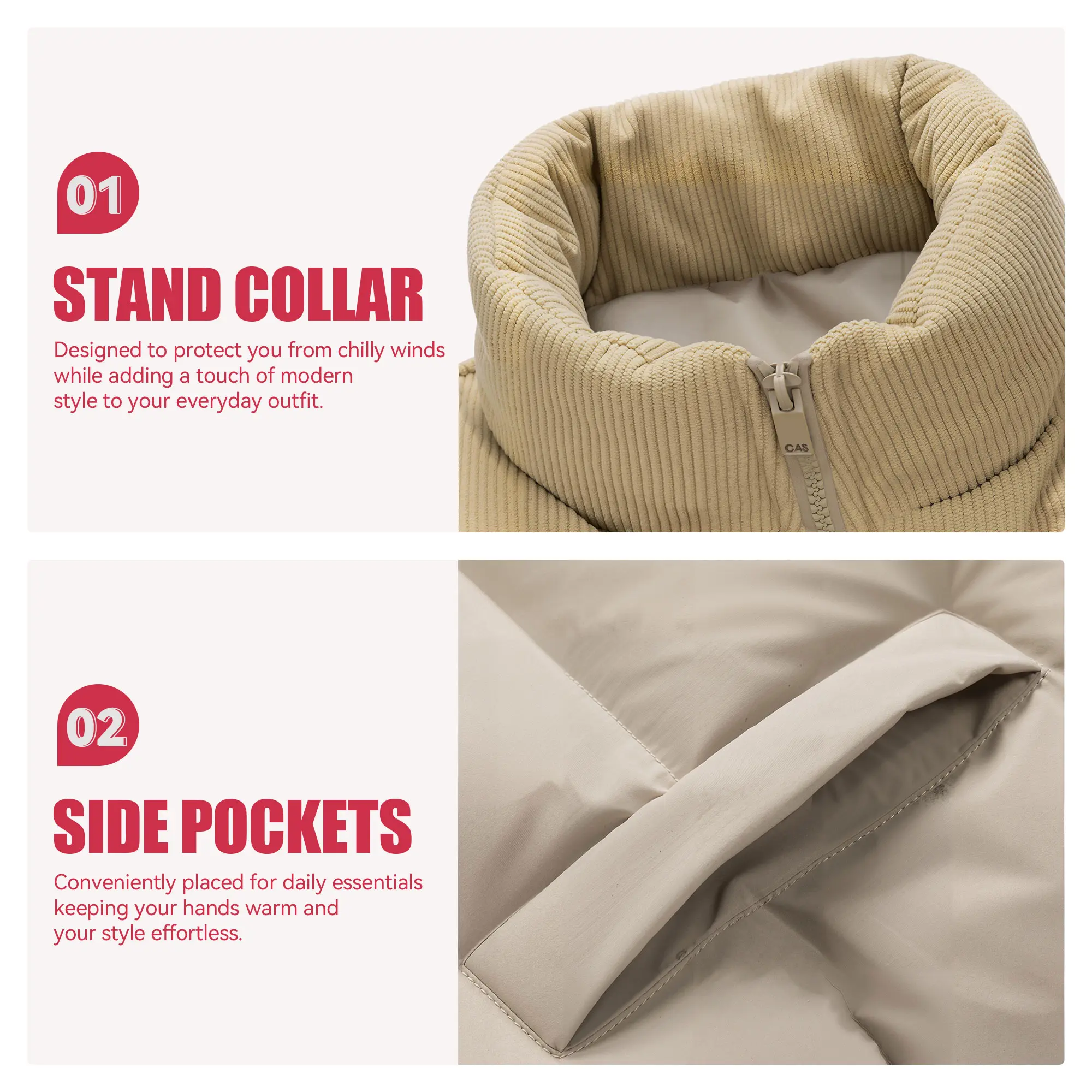 Features a smooth front zipper and two handy side pockets. They keep your hands warm and hold small items. The clean fit looks great on everyone.