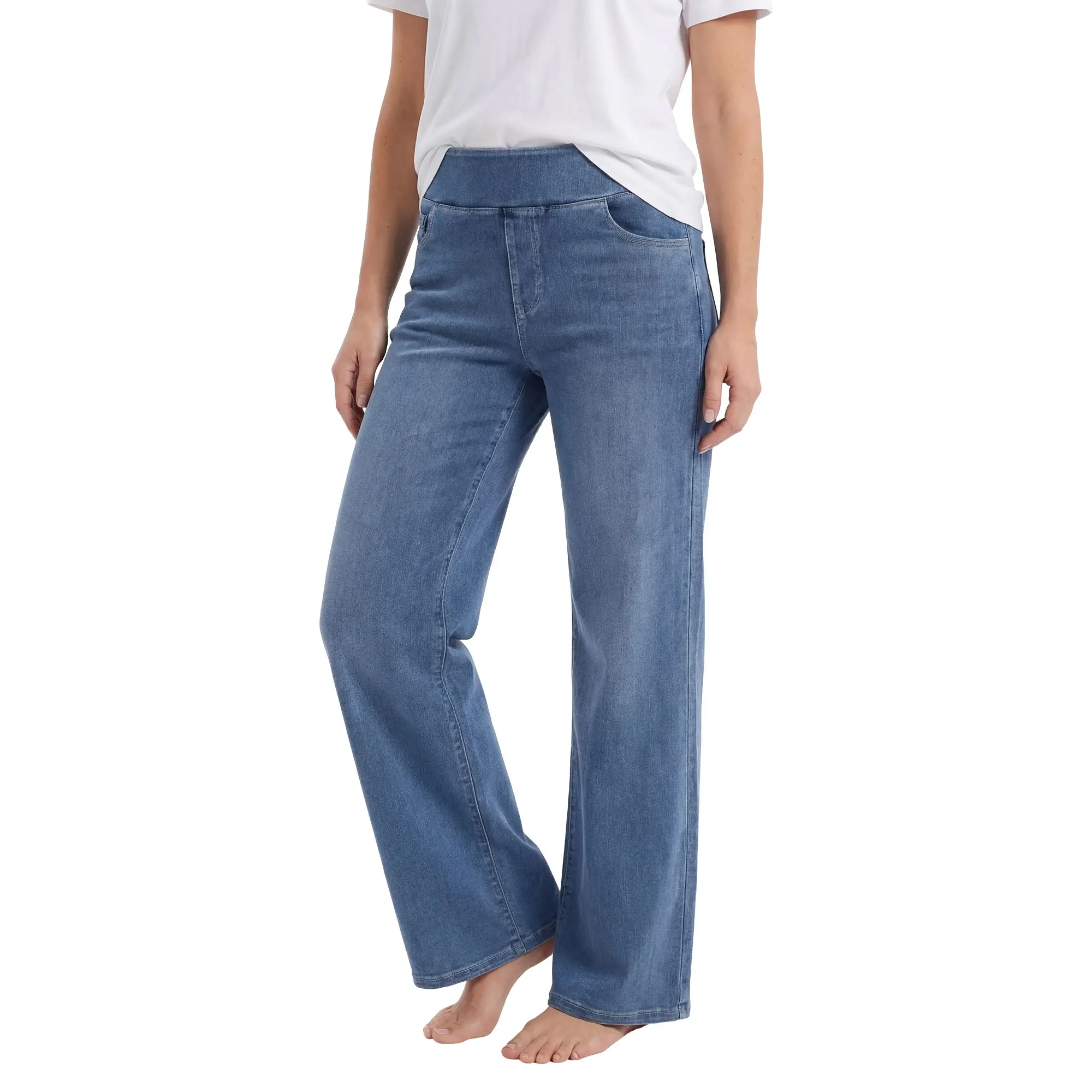 I LOVE these pants!! They look like jeans but they stretch and wrap around your waist & hips. Very comfy!!