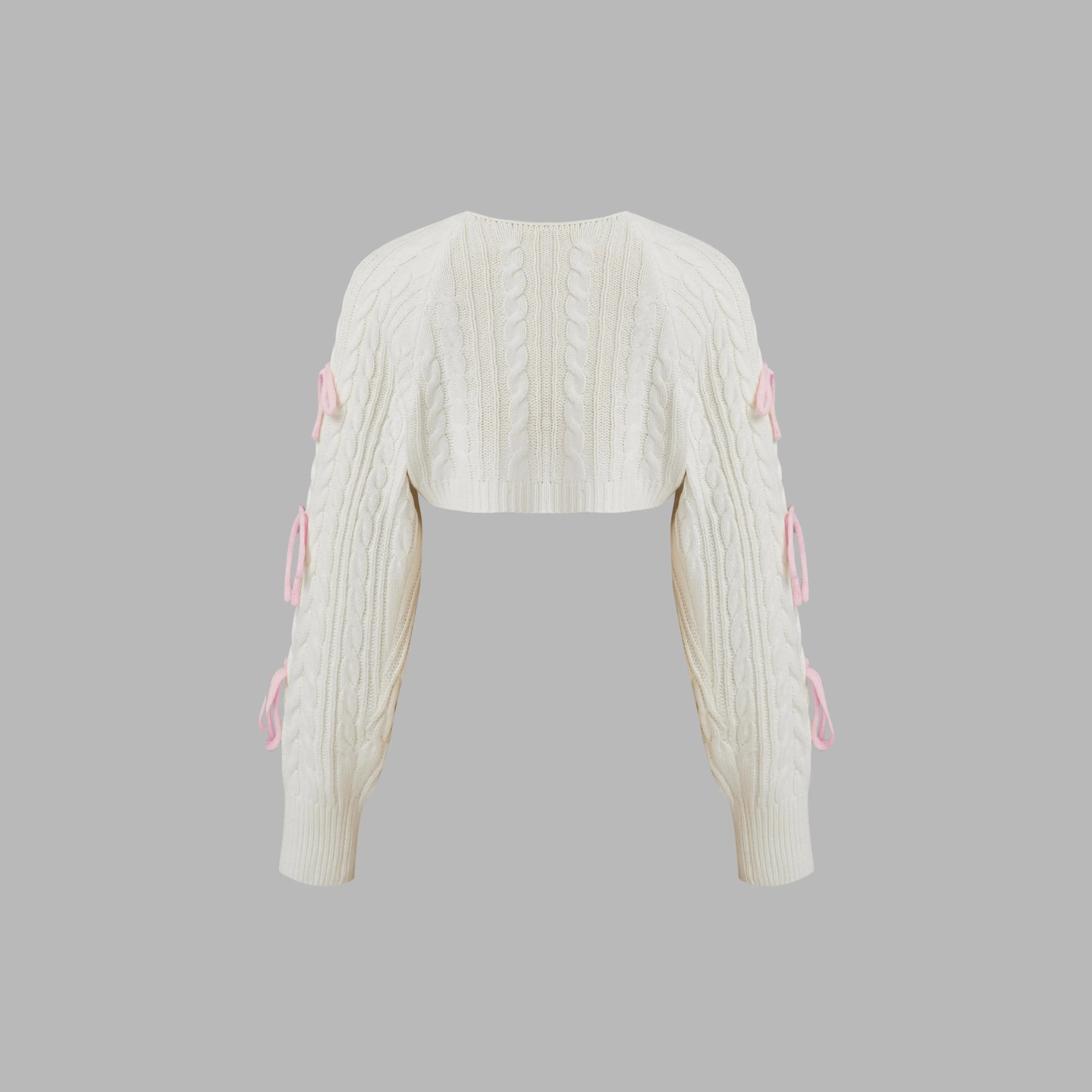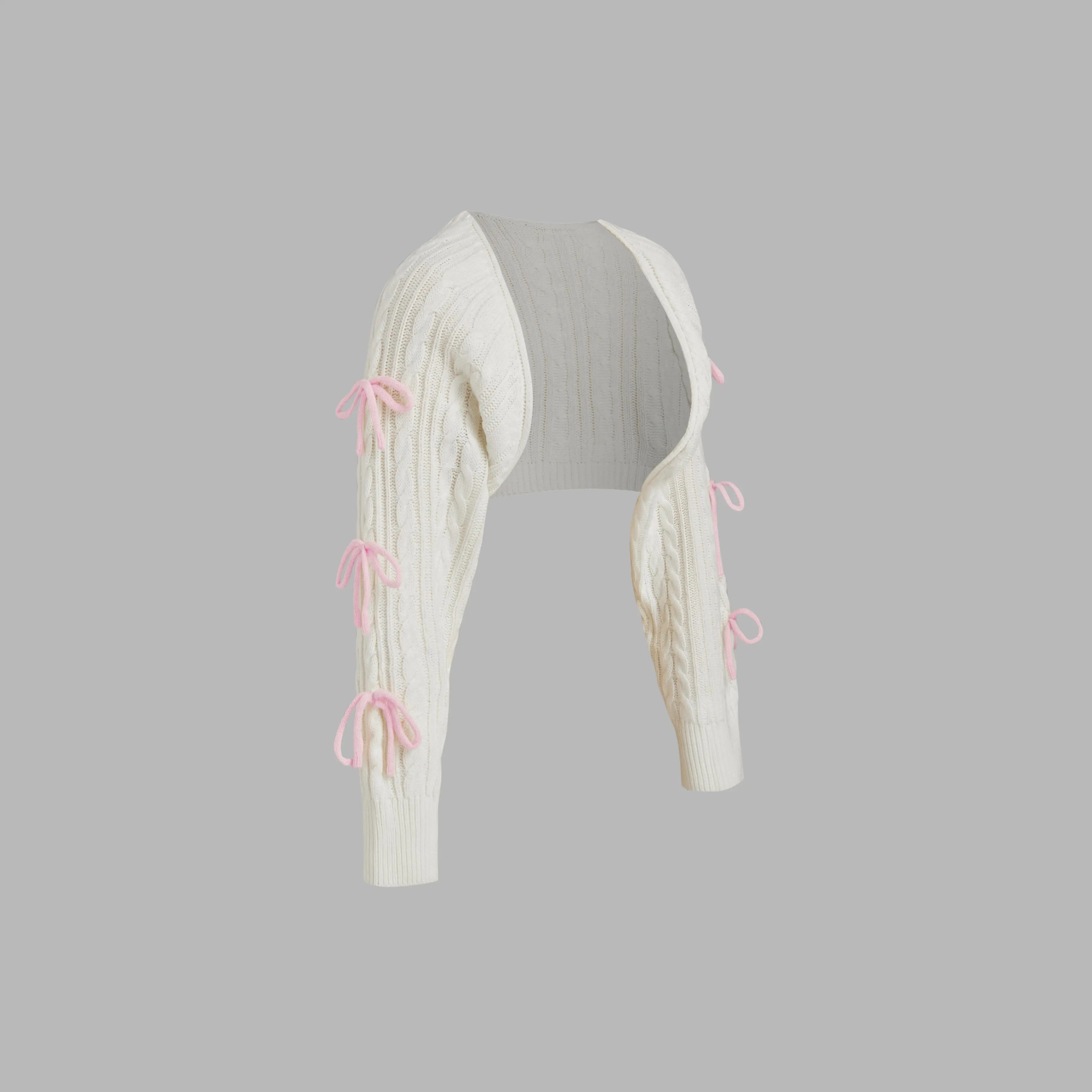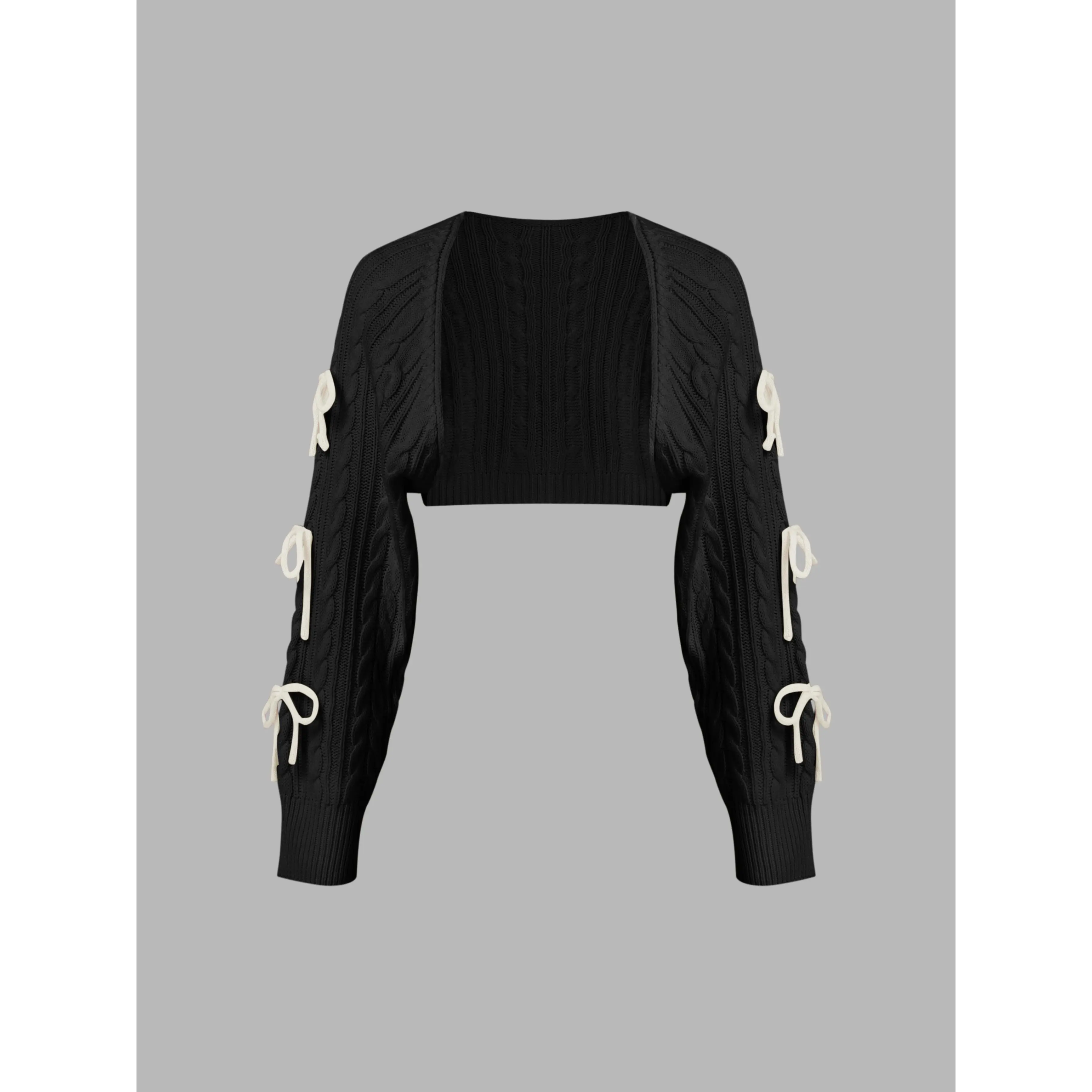 5. Cider [3 colors, size 0-10] Cable Knit Bowknot Long Sleeve Shrug