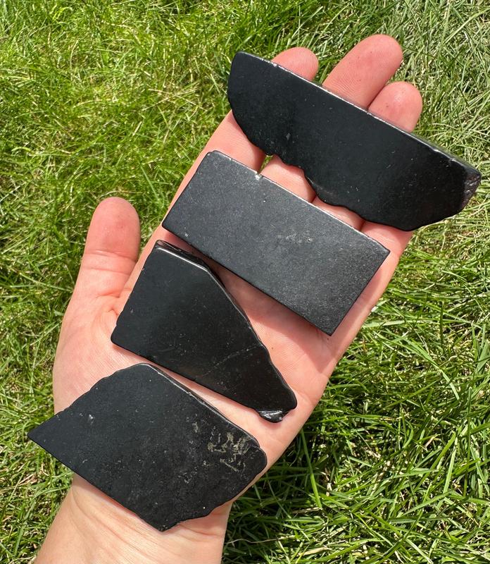 PRODUCT DETAILS: This listing is for a single Shungite Slab. Please note that these are stock photos of a few of the pieces that we have available. These are natural Crystals & Gemstones, so each stone will be unique and have variations in natural characteristics such as Size, Shape, Inclusions, and Color.