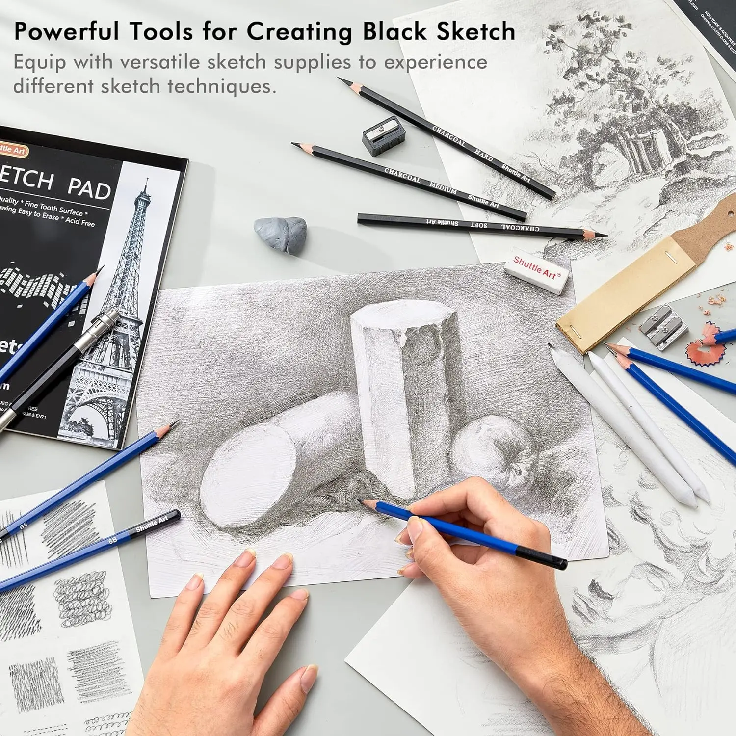 ·HIGH QUALITY PENCILS & SAFE FOR USE: Versatile drawing pencils provide you with smooth gliding and comfortable hand feeling. Strong and firm pencils’ leads are durable enough and hard to break. And all the drawing tools and accessories in this art kit are made of environmentally friendly materials. Conforms to ASTM-D4236, safe and non-toxic.