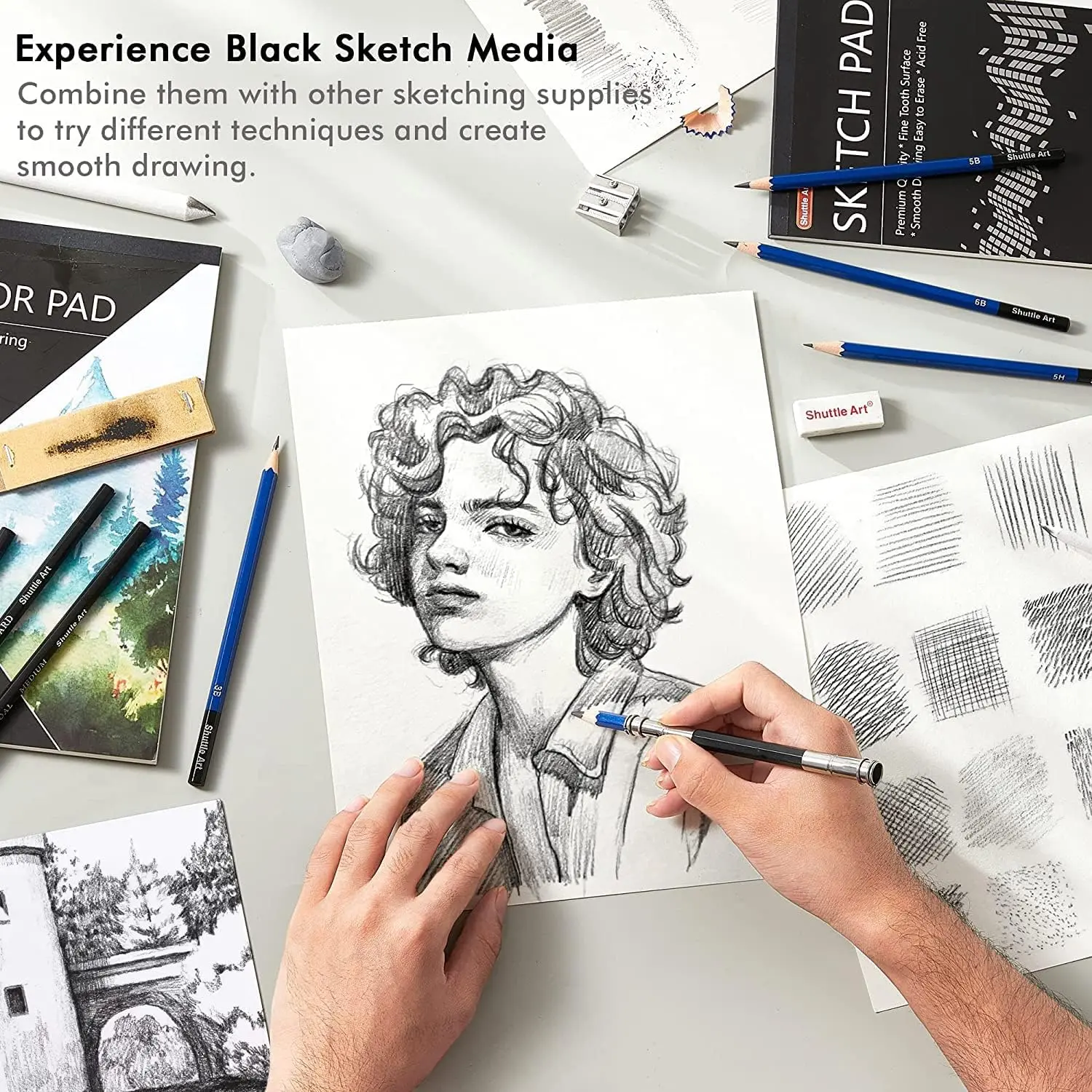 ·PROFESSIONAL DRAWING KIT: Shuttle Art 124 pack drawing pencils set includes 24 colored pencils, 24 watercolor pencils, 12 metallic colored pencils, 12 graphite pencils, 12 charcoal pencils, 4 pastel pencils, 1 woodless graphite pencil, 3 charcoal sticks, 3 graphite sticks, 6 colored pastel sticks and versatile drawing tools and paper pads, perfect for creating art works with coloring, drawing, sketching and more.