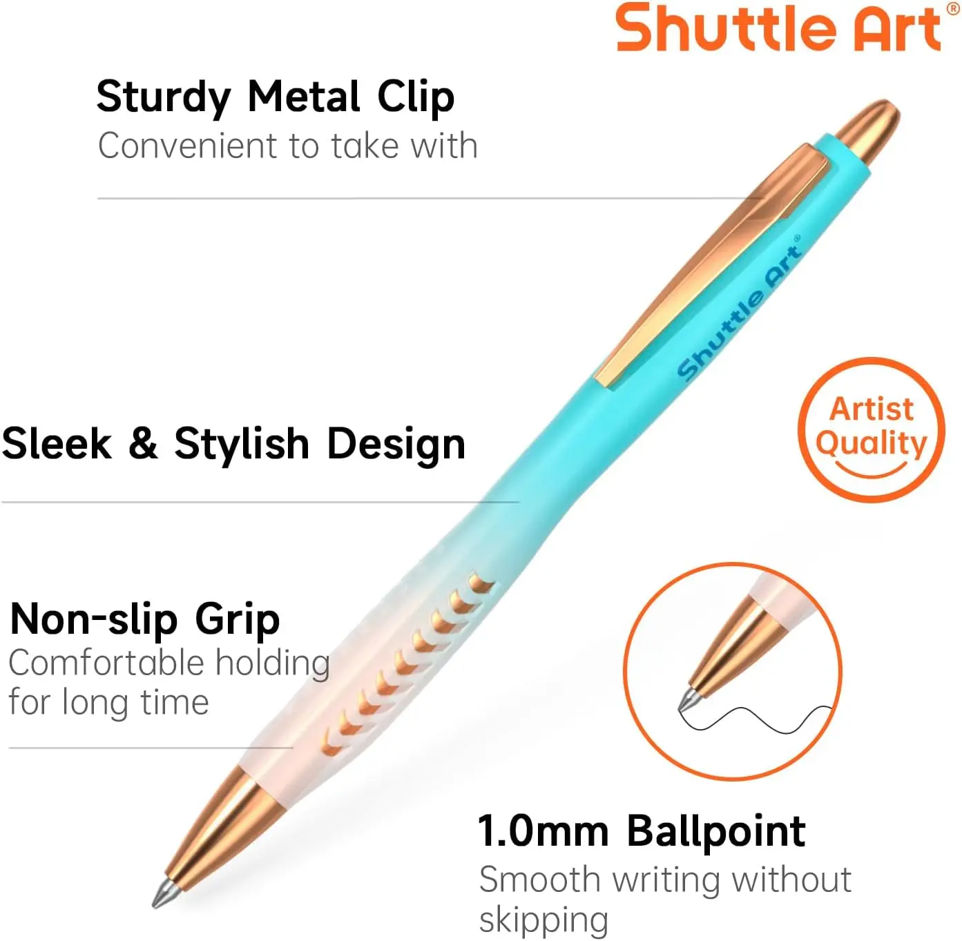 5. Shuttle Art Ballpoint Pens, 12 Pack Retractable Black Ink Ball Point Pens, Cute Pens 1.0mm Medium Point Waterproof Elegant Gift Set for Writing Journaling Note Taking School Office Home