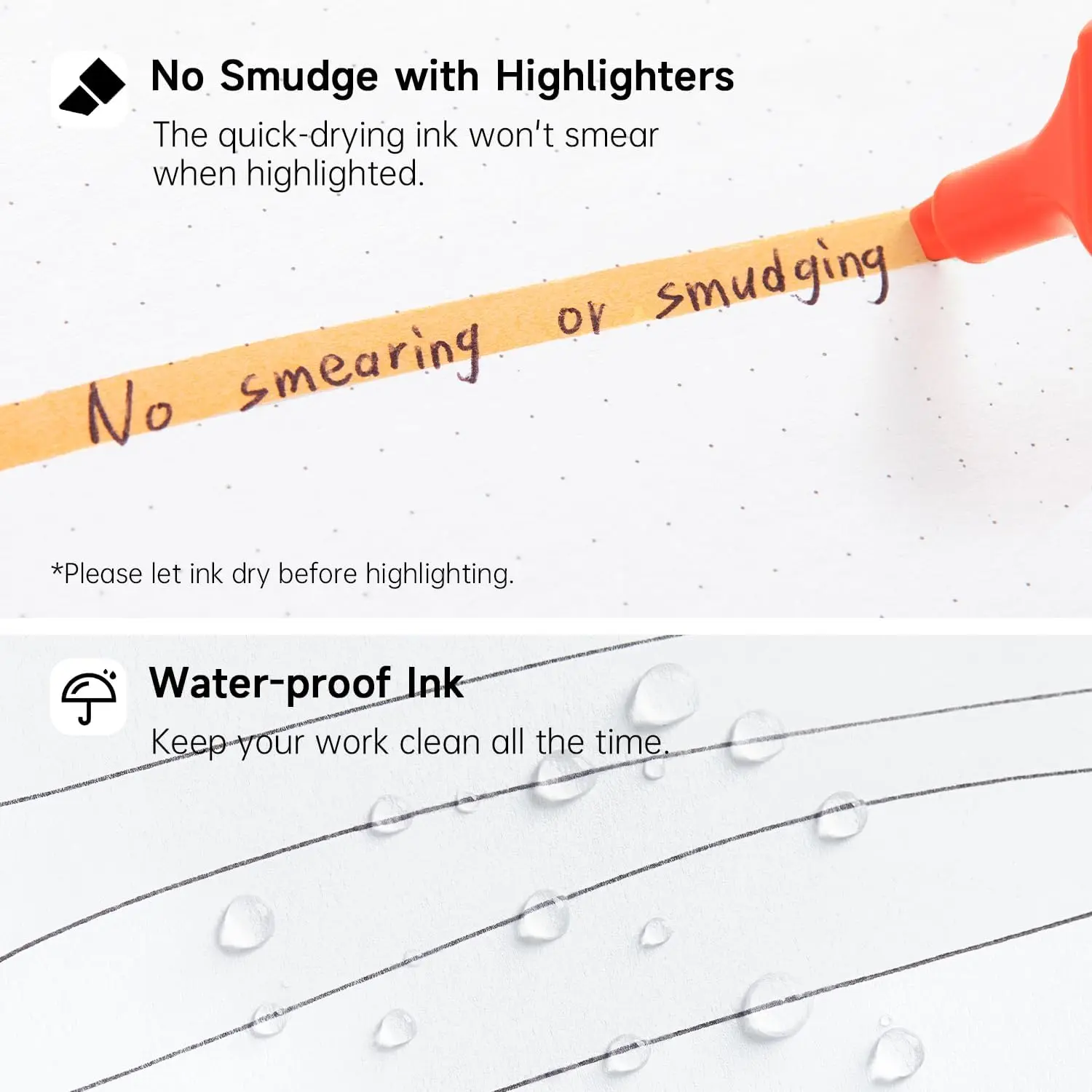 ·SMOOTH & WATERPROOF INK: 1.0mm ball point delivers skip-free glides all the time. High quality ink dries quickly without smearing or bleeding during writing. And the pens feature waterproof and fade-resistant ink, keeping your writing clean and lasting.