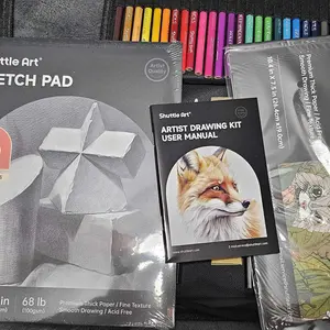 ·COMPLETE DRAWING KIT: Shuttle Art 103 pack drawing set comes with 24 colored pencils, 24 watercolor pencils, 12 metallic colored pencils, 12 graphite pencils, 12 charcoal pencils, 1 pencil extender, 1 sandpaper pencil pointer, 3 blending paper stumps, 1 sketch pad, 1 watercolor pad, 1 coloring book, 1 double-hole sharpener, 1 plastic sharpener, 1water brush pen, 2 binder clips, 2 paint brushes, 1 plastic eraser, 1 kneaded eraser, 1 foldable carrying case and 1 user manual, 103 pack in total.