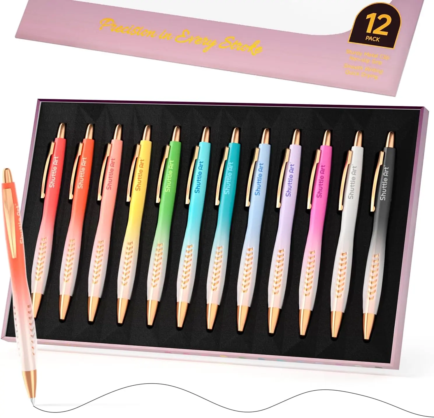·12 VIBRANT SHIFTING-COLOR BARRELS: Enjoy 12 unique shifting color pens that are both stylish and fun to use. Each pen is filled with smooth black ink. Ideal for writing, journaling, note-taking, underlining. A perfect choice for your everyday use.