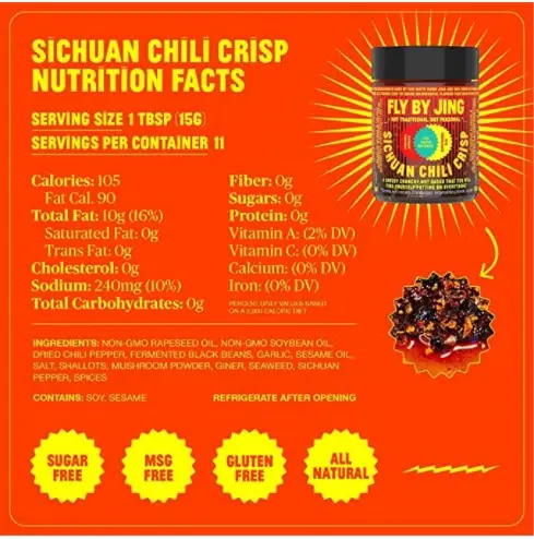 This Fly By Jing Sichuan Chili Crisp 6 oz packs in the authentic flavors of Chengdu cuisine that will leave you craving for more. Its blend of spices makes it flavorful yet not too spicy - good for those who love bold flavors without the heat overload.