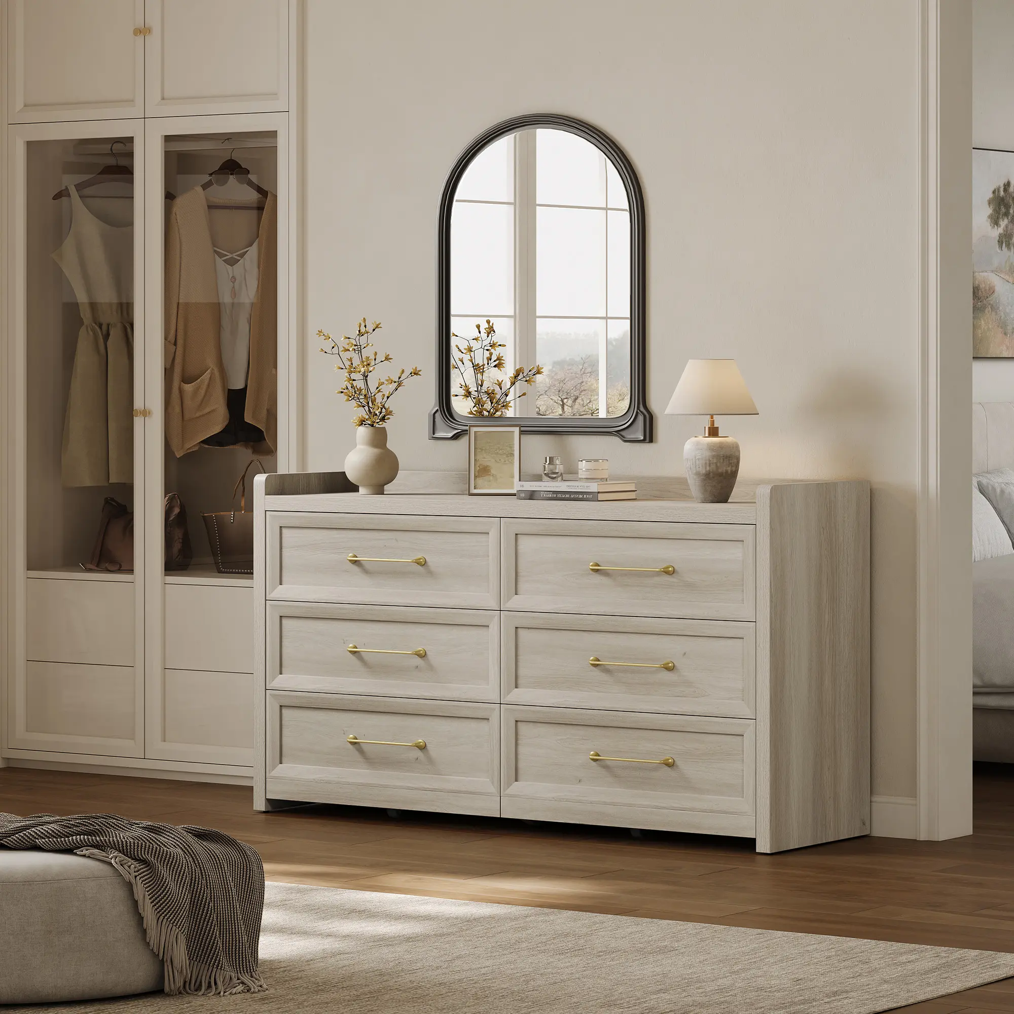 ·【Safety and Stability You Can Trust】Safety is a top priority with this nursery dresser. Its integrated wood leg structure, adjustable feet, reinforced back fasteners, and additional support beneath the base work together to ensure lasting stability. For extra peace of mind, the included anti-tip wall anchor is perfect for homes with children or pets. This large closet dresser is a secure, reliable addition to your home, keeping your space safe and organized.