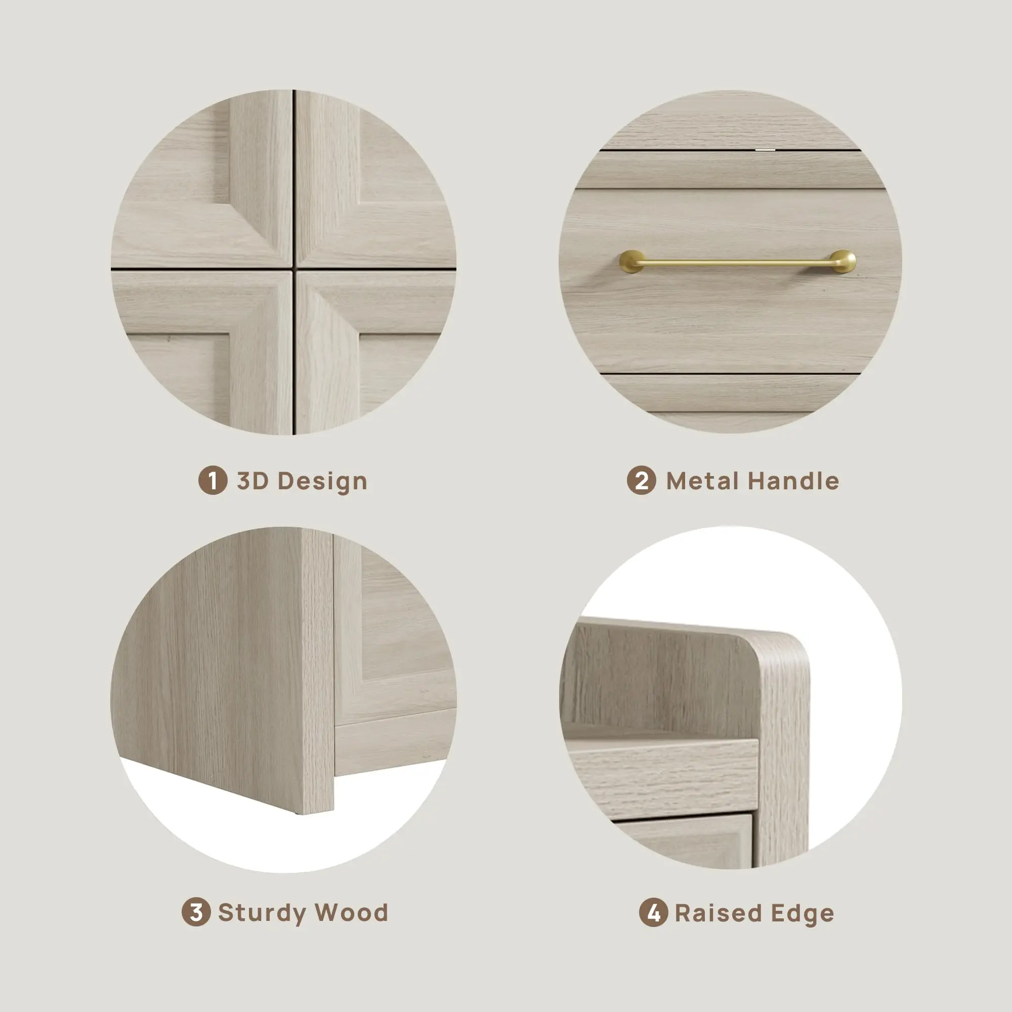 ·【Design Your Life with SICOTAS】This wood dresser features a distinctive, dimensional drawer-front design that brings both style and function to your space. With its rich wood grain finish, sleek handles, and spacious drawers, it seamlessly combines beauty and practicality. Available in three versatile colors, it fits into any bedroom, nursery, closet, living room, or hallway, adding endless possibilities to your home.