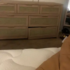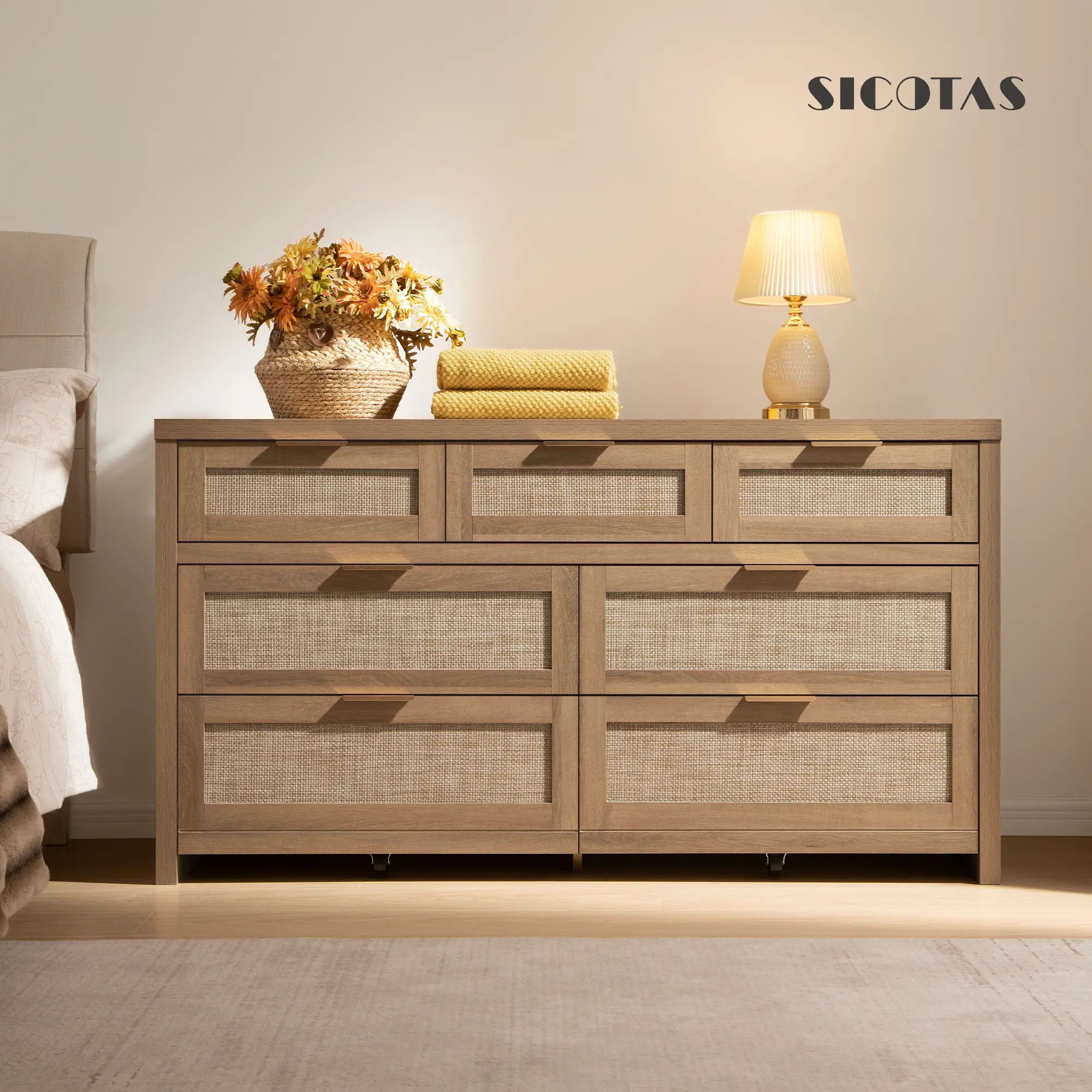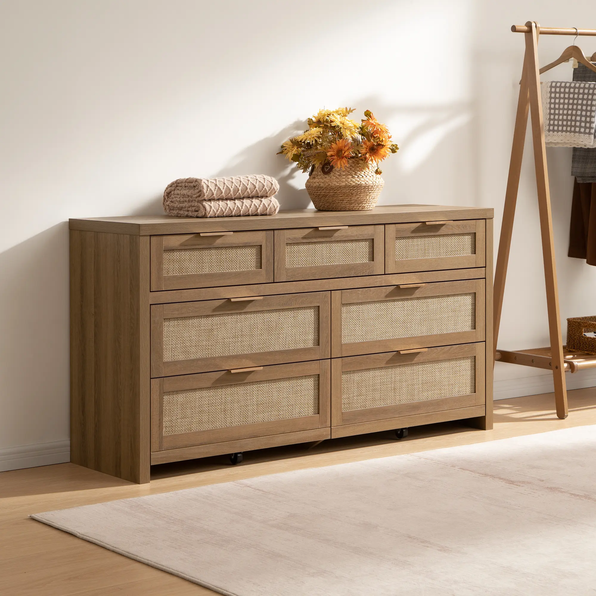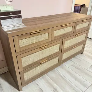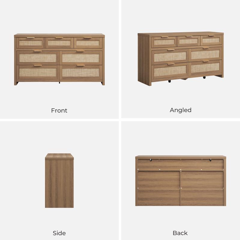 ·【Bohemian Design for a Cozy Home】: This wooden dresser features a trendy rattan drawer design, combined with a natural oak panel, and golden handles. This unique blend creates a warm and retro look that will transform any room in your house into a cozy haven.