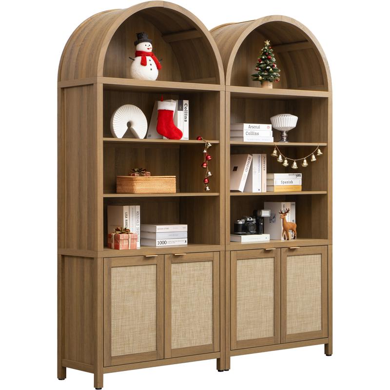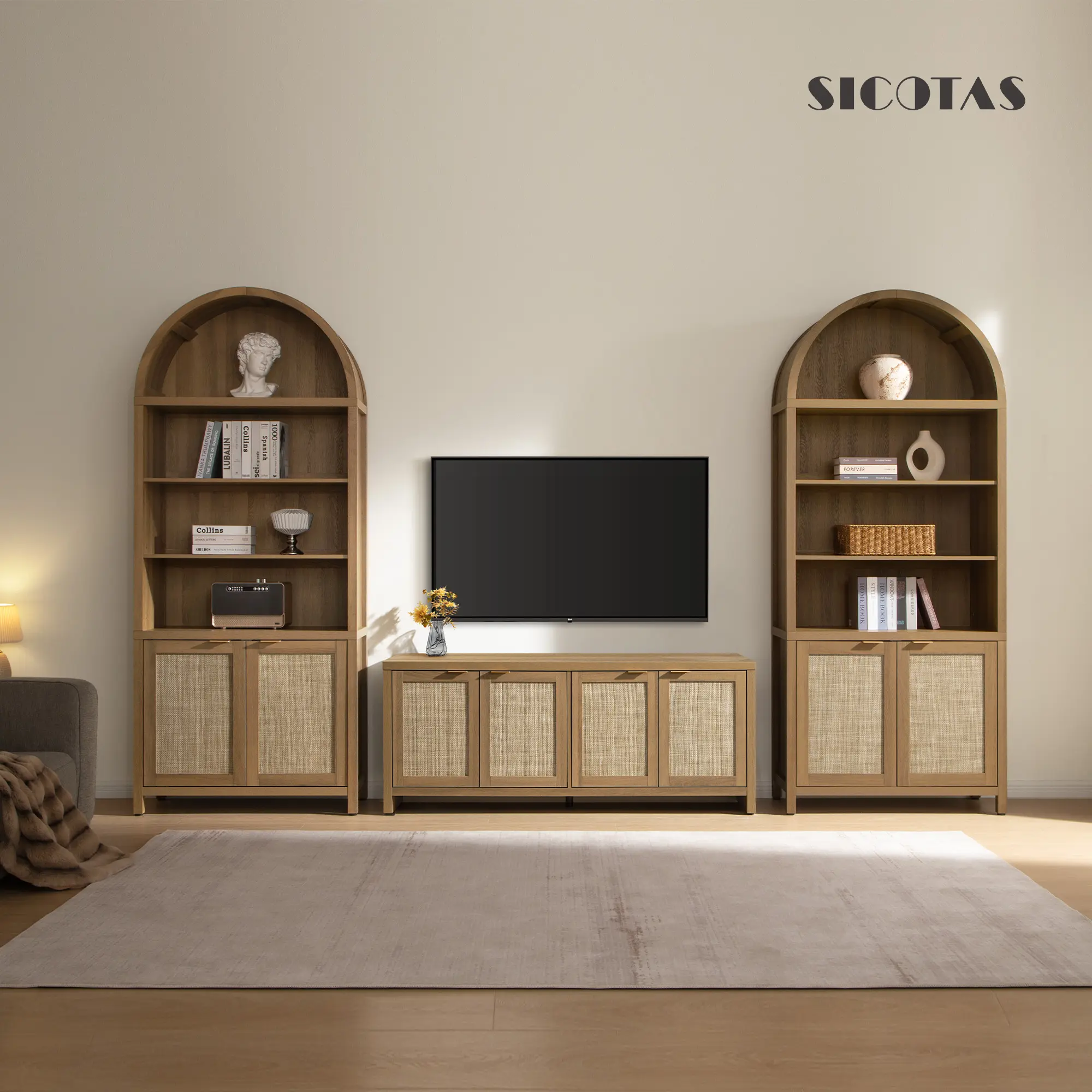 ·【Exquisite Aesthetic Appeal】: The SICOTAS bookcase boasts a sleek arched top, adding a graceful and stylish silhouette that effortlessly complements various interior design styles. The unique rattan style elements infuse a natural and warm texture, perfect for living rooms, kitchens, bedrooms, studies, or offices. This versatile piece functions not only as a practical book shelf but also as an arched cabinet, adapting to your varying storage and decorative requirements.