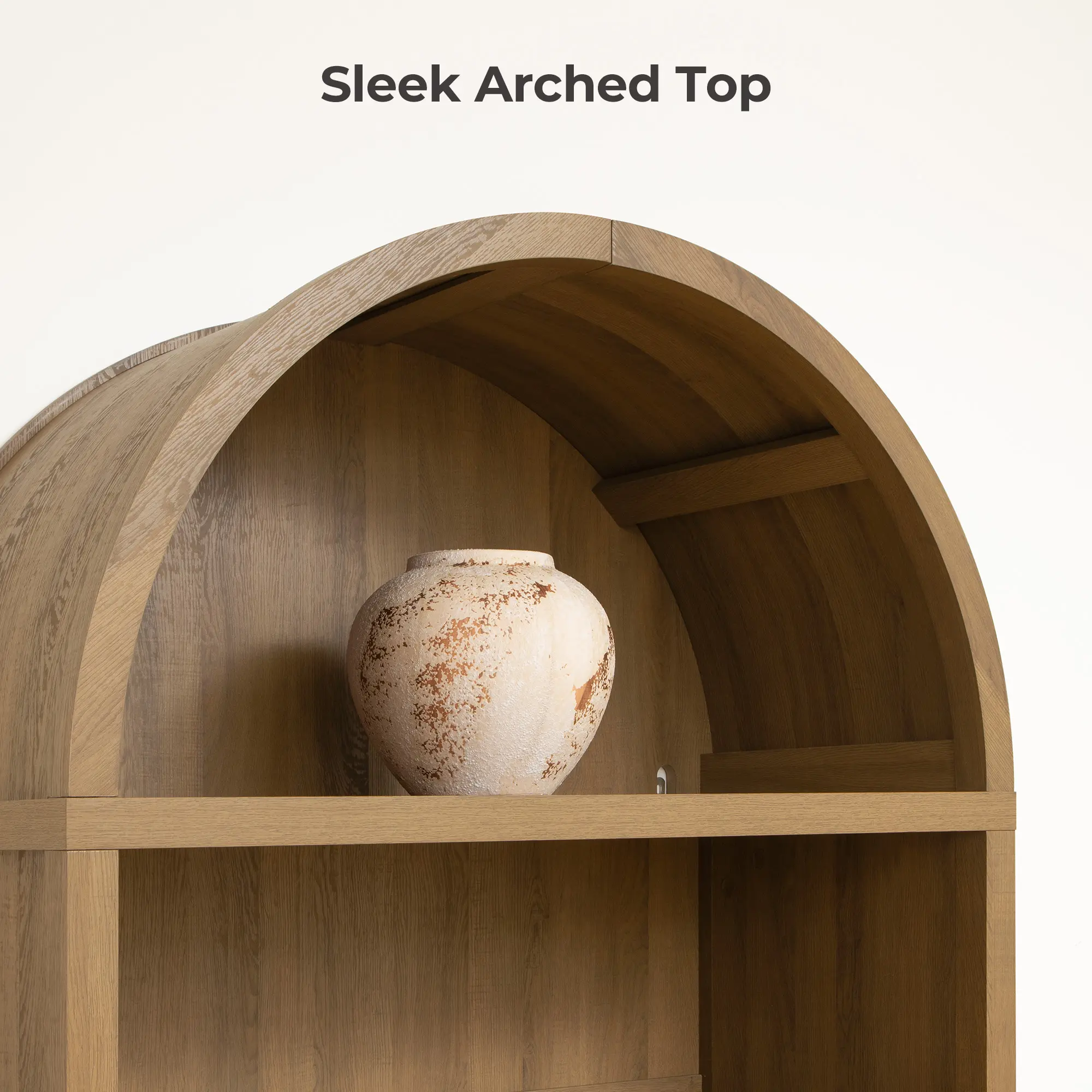 ·【Safe & Secure】: This bookshelf with storage features a safe anti-tip kit that prevents the shelf from toppling. This ensures the bookcase with doors remains stable and secure, especially in households with children or pets. You can rest assured that your arched bookshelf is safe, allowing you to enjoy your items without concern. The smooth, burr-free surface adds an extra layer of safety during use.